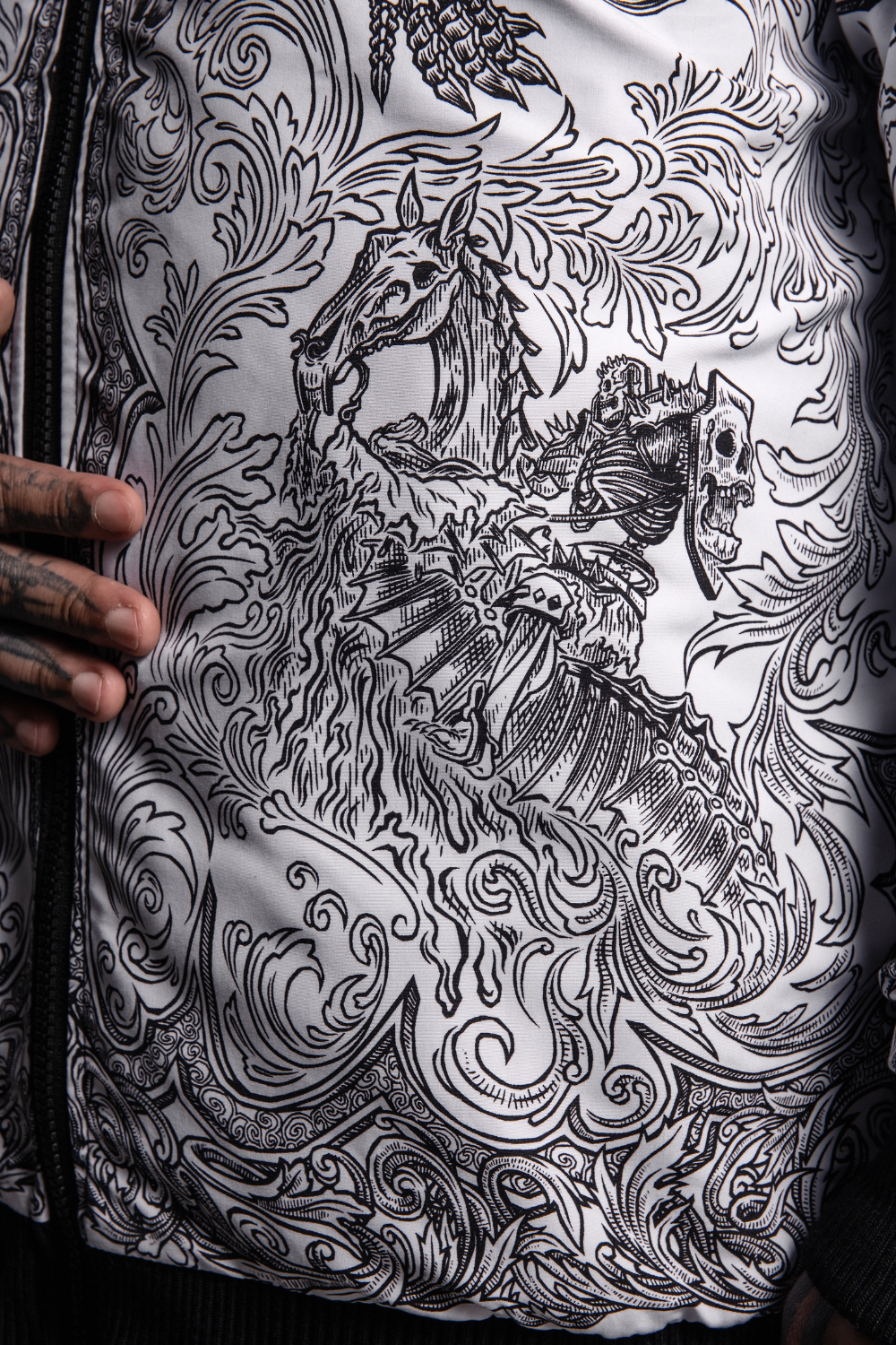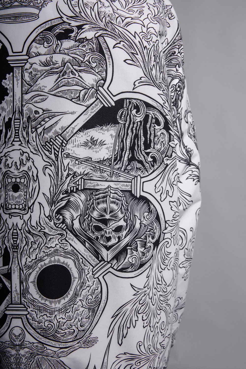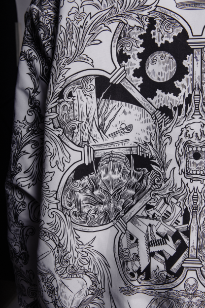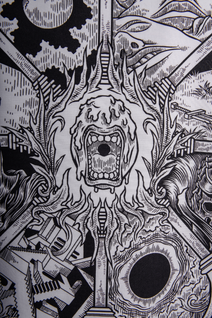 Reversible design with black side featuring localized print and white side with fullprint