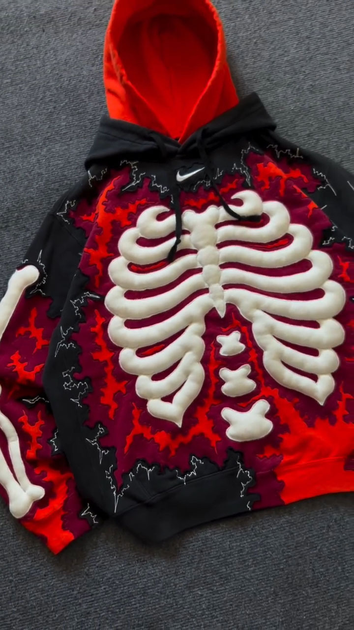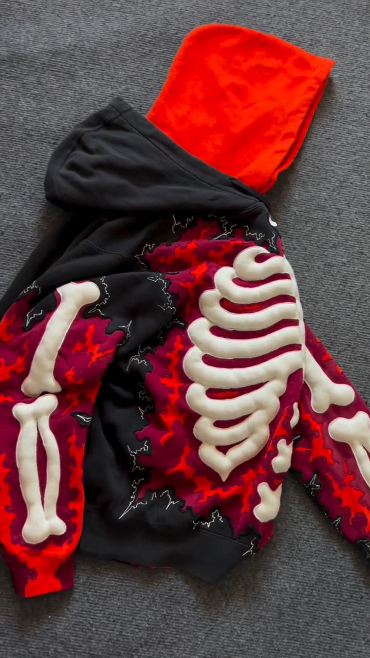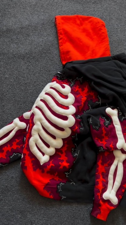 3D Color-Block Skull Hoodie