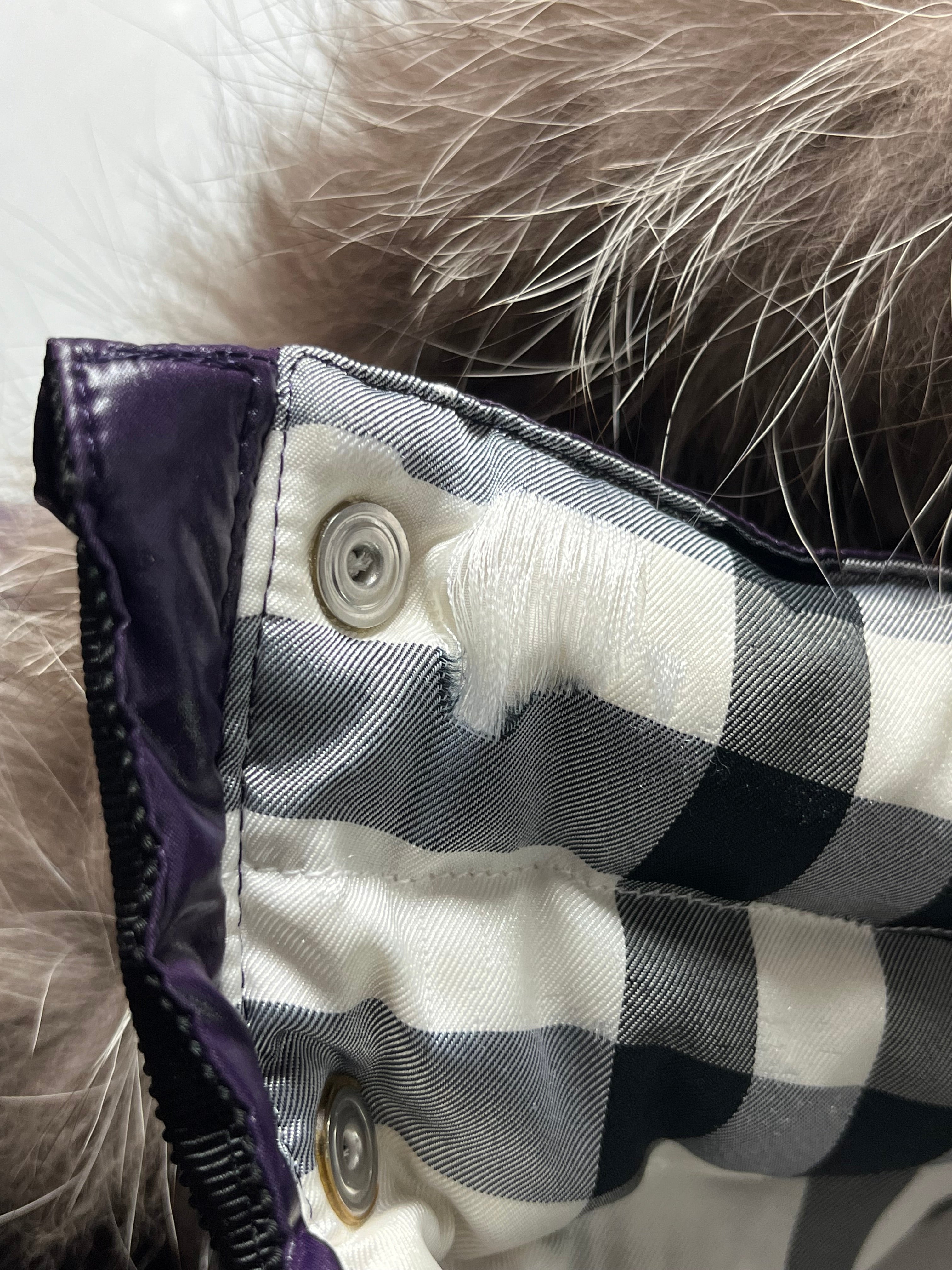 Great condition overall, however there is a small defect on the inside of the collar (please check this in the last photos). This defect is not visible and does not affect the wearability of the item in any way.