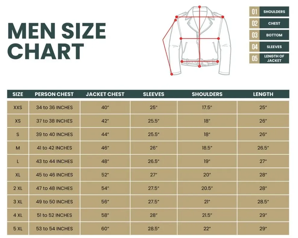 | 5 XL | 53 to 54 INCHES | 60" | 28.5" | 22" | 29" |
