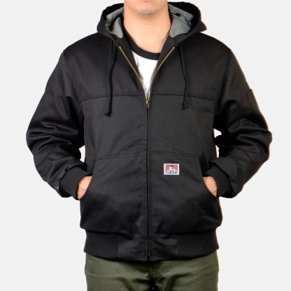 The Full Zip Hooded Jacket is constructed with a durable poly-cotton twill blend, this jacket features two side pockets and a utility pocket on the left sleeve. The adjustable hoodie, ribbed collar, and waistband provide the perfect snug fit, while the interior polar fleece lining gives you added warmth and comfort. Perfect for any chilly, windy day, this jacket is a must-have for any workwear collection.