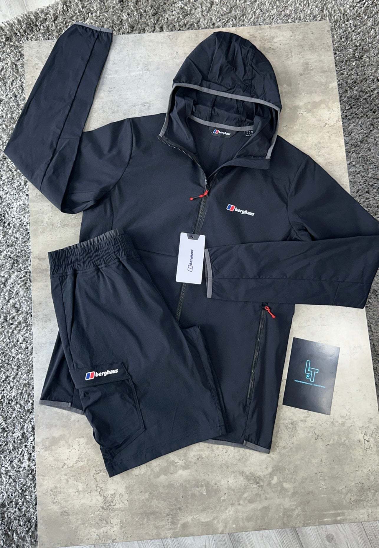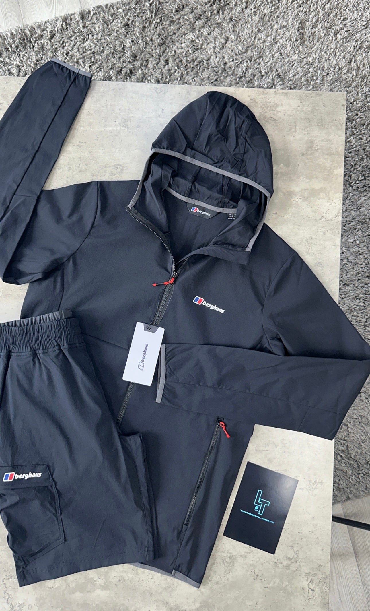The Berghaus Theran Cargo Jacket Set in black combines lightweight durability with practical design, ideal for outdoor enthusiasts. Featuring a variety of pockets, it offers ample storage for essentials while maintaining a stylish, modern look. This set is crafted to provide comfort and functionality, making it a reliable choice for active lifestyles.