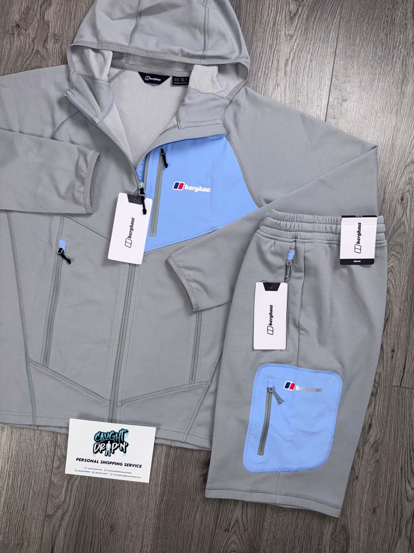 Berghaus Light Grey, Baby Blue Full Zip Hoodie | Shorts Set