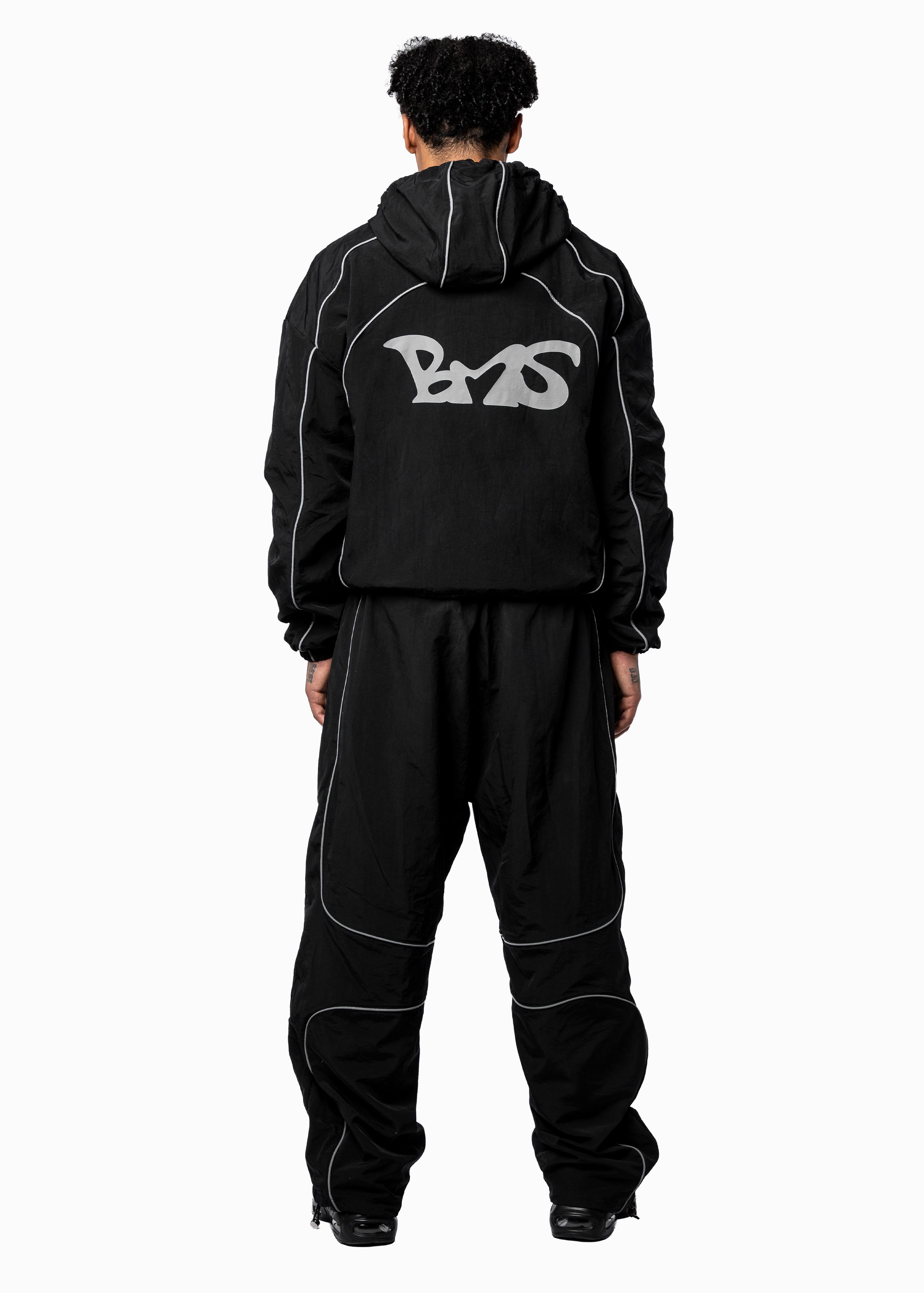 BLACK NYLON ZIP HOODIE - BMS (Größe)