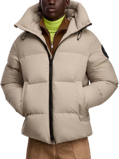 The EnduraLuxe Black Label is a packable and ultra-light that stows into its left interior pocket. This , a weather-ready , features an adjustable down hood, two-way zip and internal drawcord hem for tailored warmth. Removable backpack straps convert it to a carry bag, with wool-lined zip pockets and recessed rib-knit cuffs on this — ideal for travel.