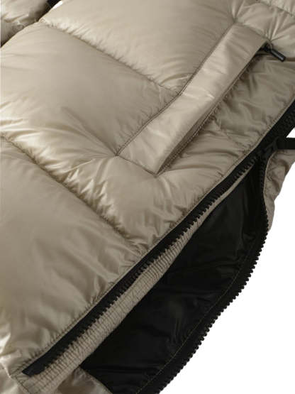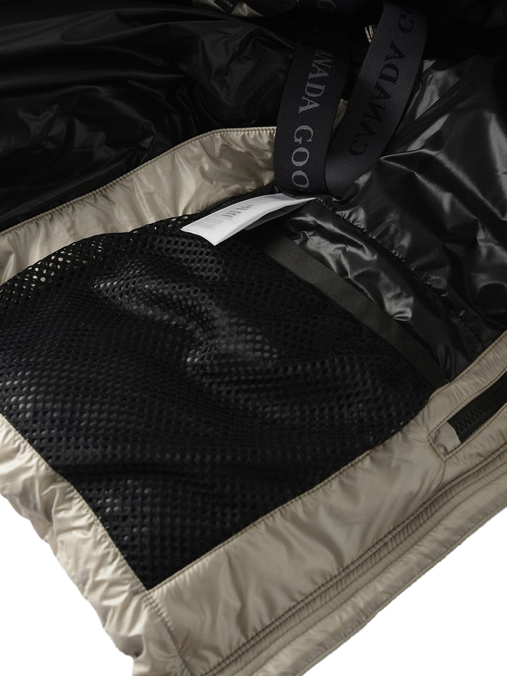 The Canada Goose Cypress Puffer EnduraLuxe Limestone is a packable and ultra-light that stows into its left interior pocket. This features an adjustable down hood, removable backpack straps, two-way zip and internal drawcord hem—an ideal travel piece and versatile for UK city life.