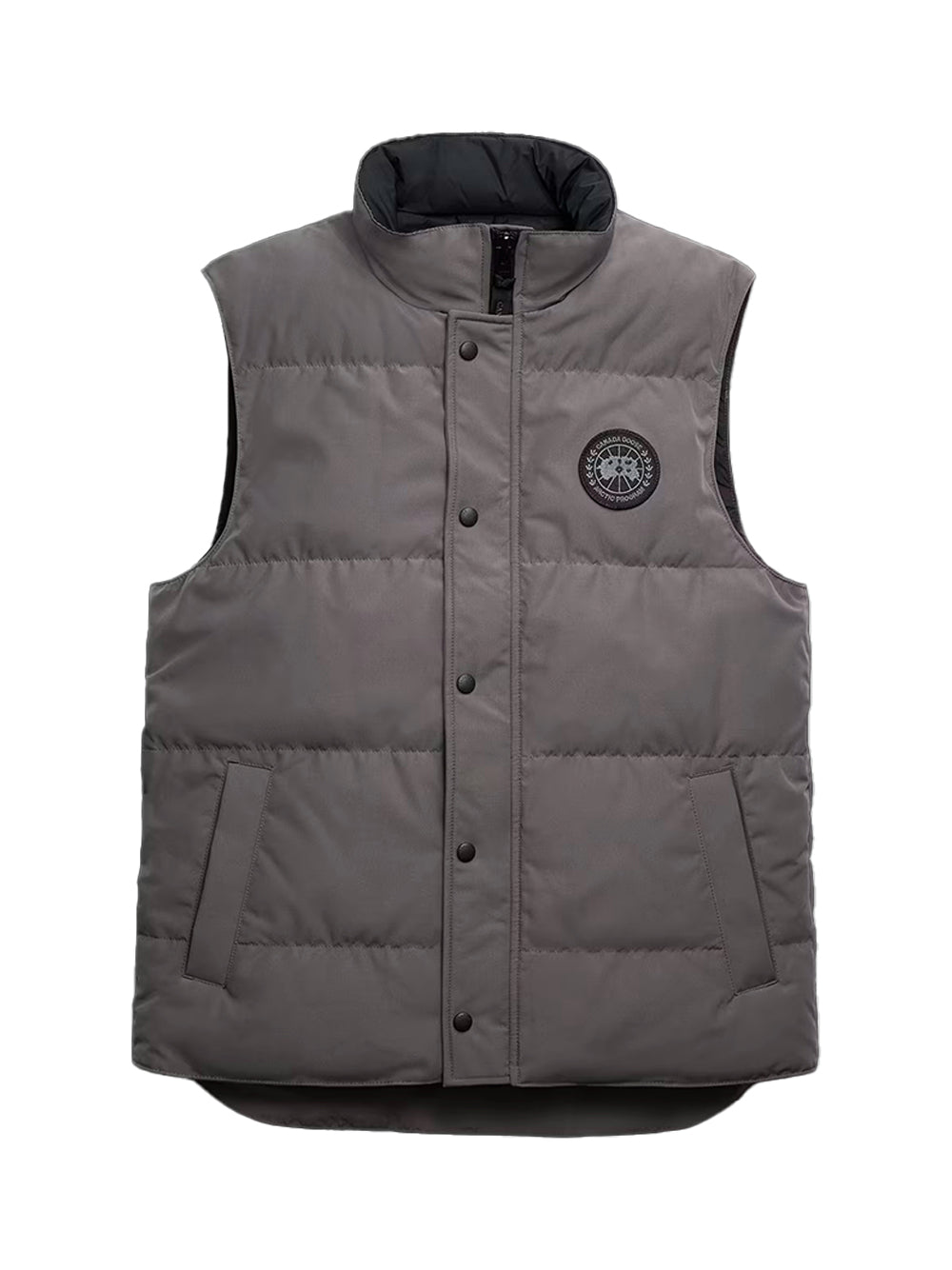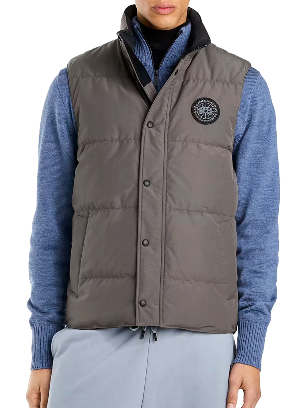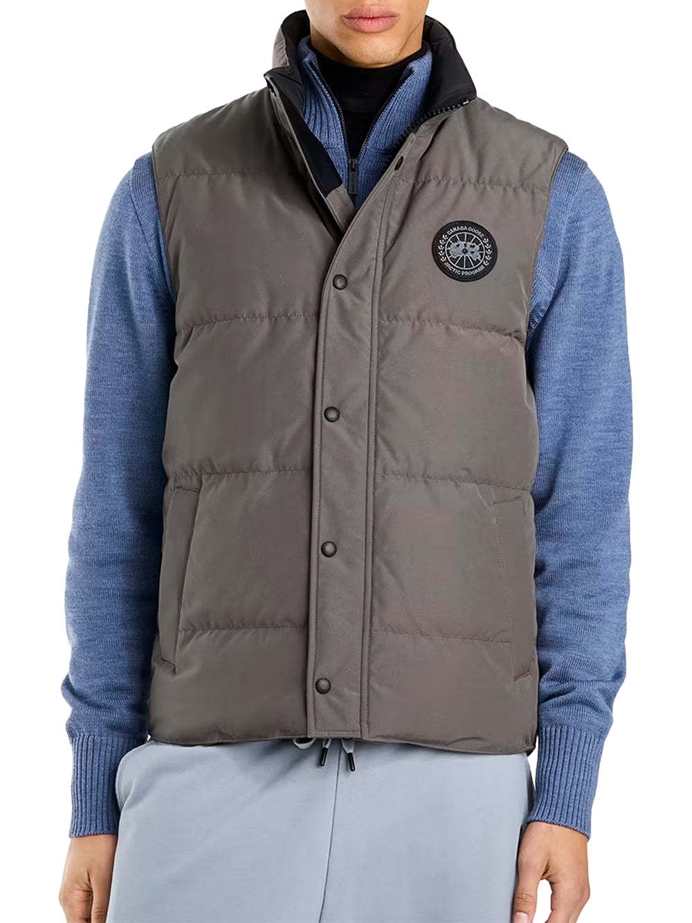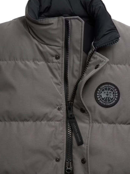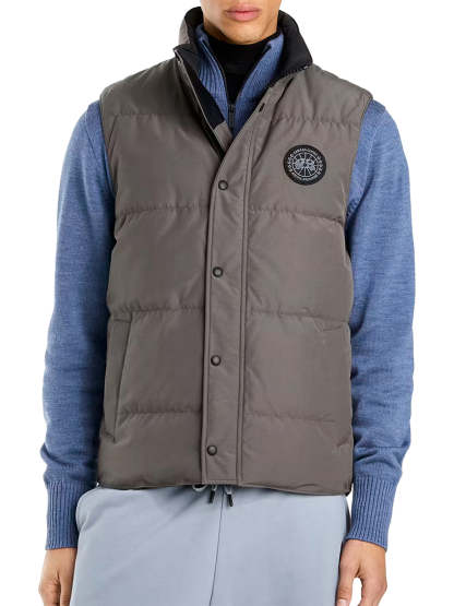 The Canada Goose Garson Vest Taupe Grey is a classic and quilted gilet with a suede-tricot chin guard and snap storm flap to keep out drafts. offers fleece-lined hand pockets, interior drop-in pockets and a hip-length, longer-back cut—appealing to shoppers.