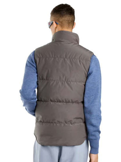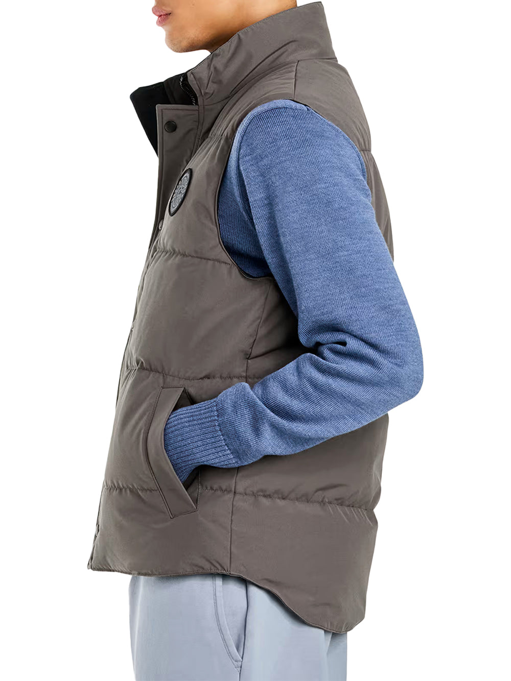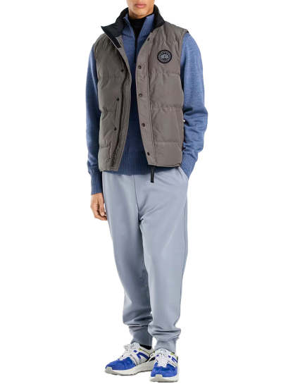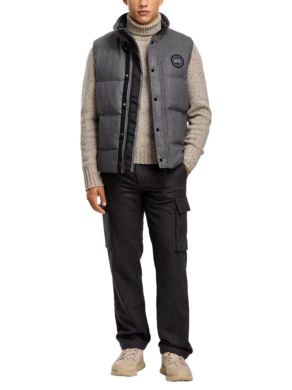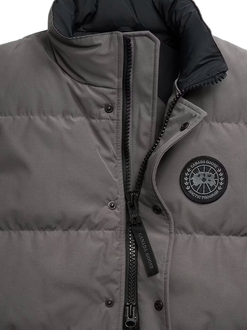 The Canada Goose Garson Vest Taupe Grey is a classic and quilted gilet with a suede-tricot chin guard and snap storm flap to keep out drafts. offers fleece-lined hand pockets, interior drop-in pockets and a hip-length, longer-back cut—appealing to shoppers.