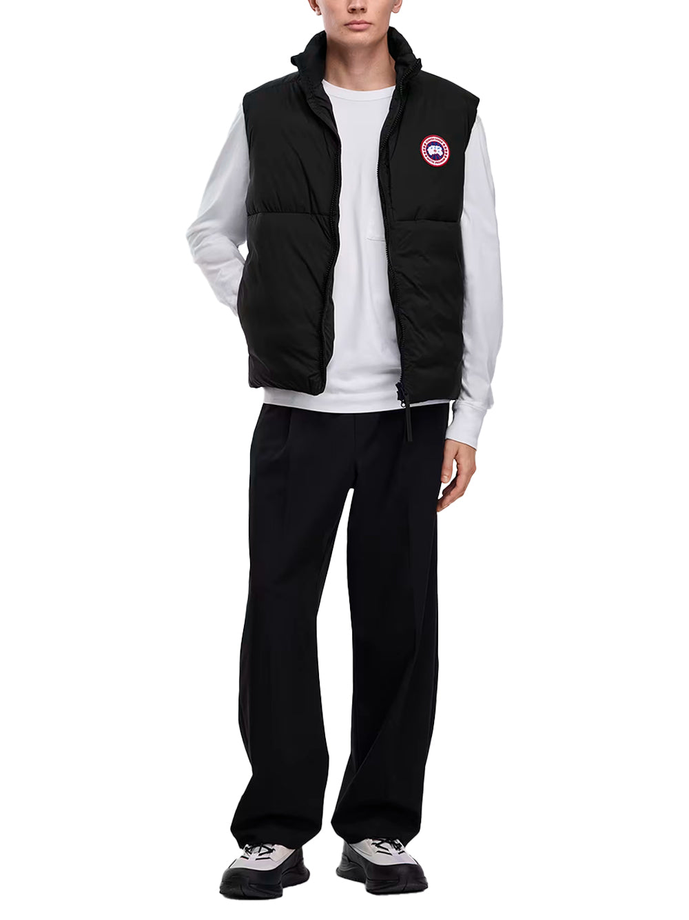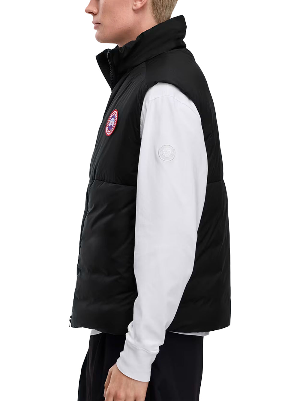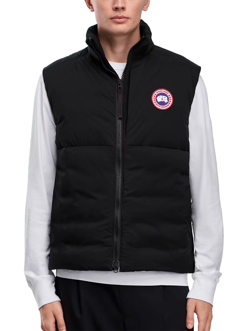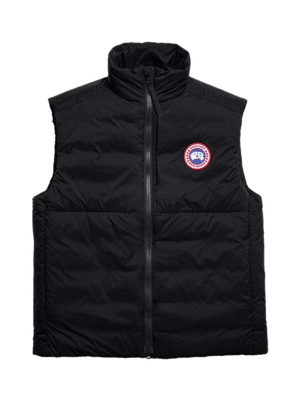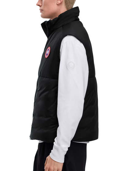 The Canada Goose Lodge Vest in Black is a packable and practical with 750-fill down, two-way zip closure and fleece-lined hand pockets for warmth. This canada goose cross-shop piece packs into its chest pocket and has an internal drawcord hem to seal heat.