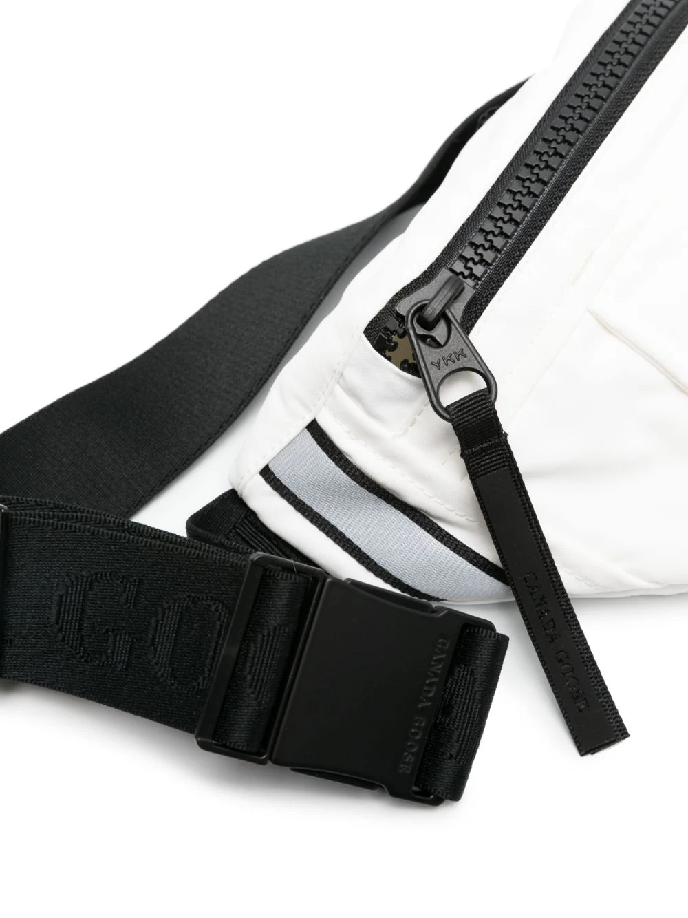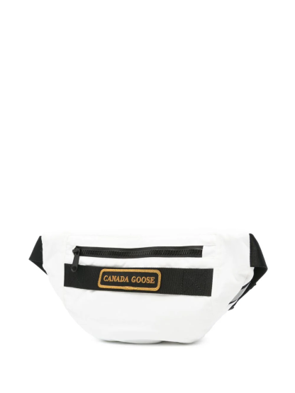 The Canada Goose Men Logo Patch Belt Bag in white is a compact and practical piece with top zip and front logo patch. This has an adjustable waist strap, rear zip pocket and internal slip pocket — a neat travel essential that tucks into luggag.