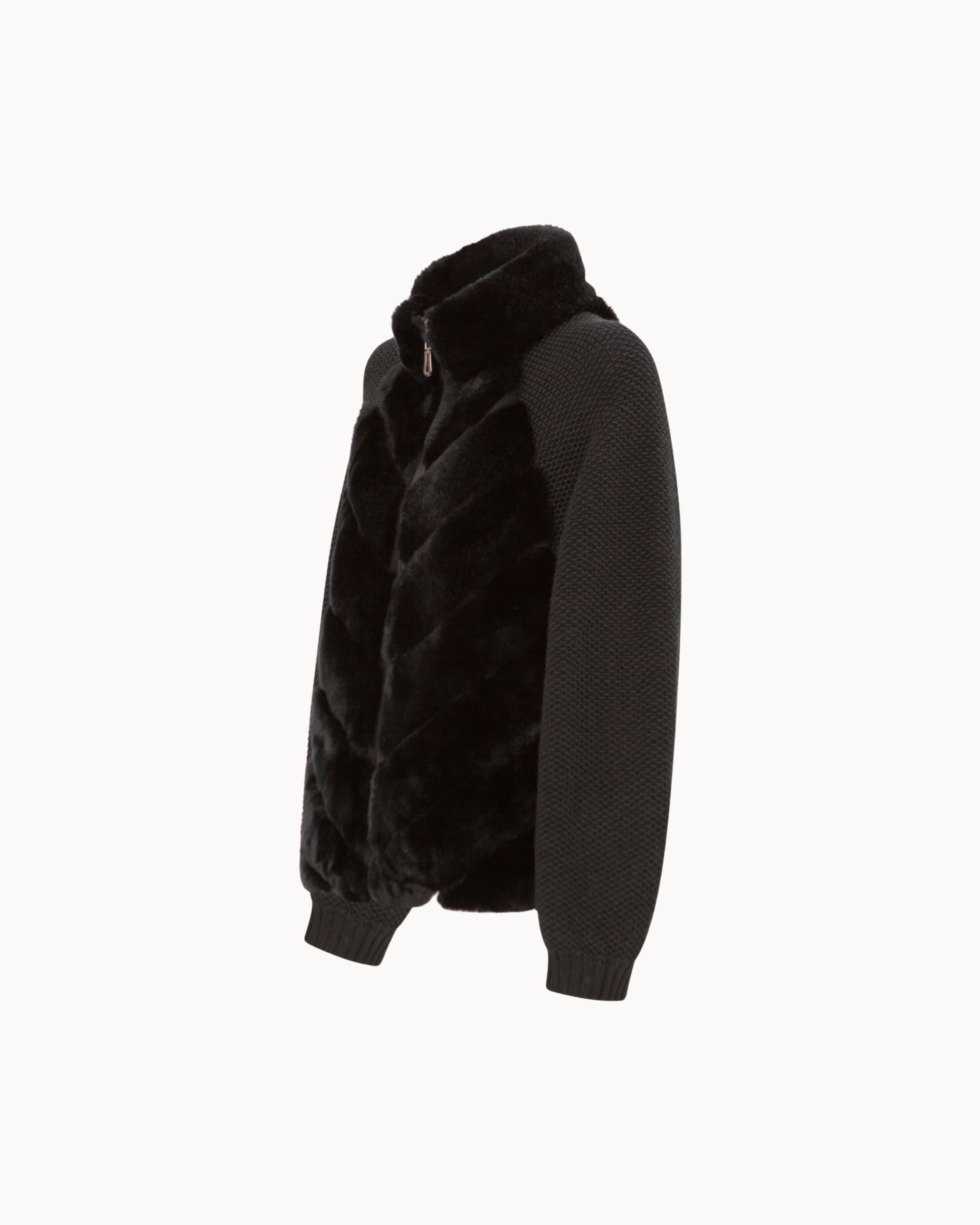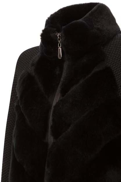 Wrap yourself in refined comfort with the Cenya Fur Jacket - Obsidian Black, a statement piece that balances plush luxury with effortless versatility. Crafted from plush khaki Rex Rabbit Fur?in deep khaki and complemented by textured knit sleeves, Cenya offers a modern play on contrasts.