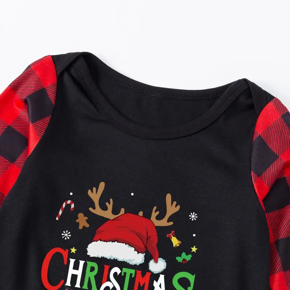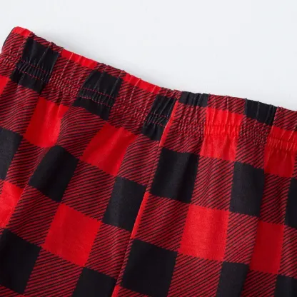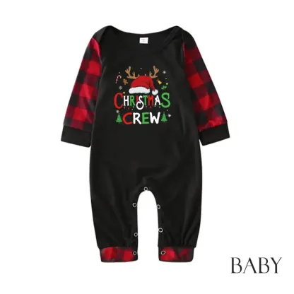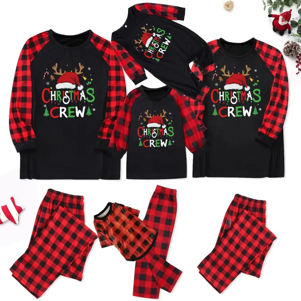 Christmas Crew parent-child plaid pajamas set with Christmas tree print