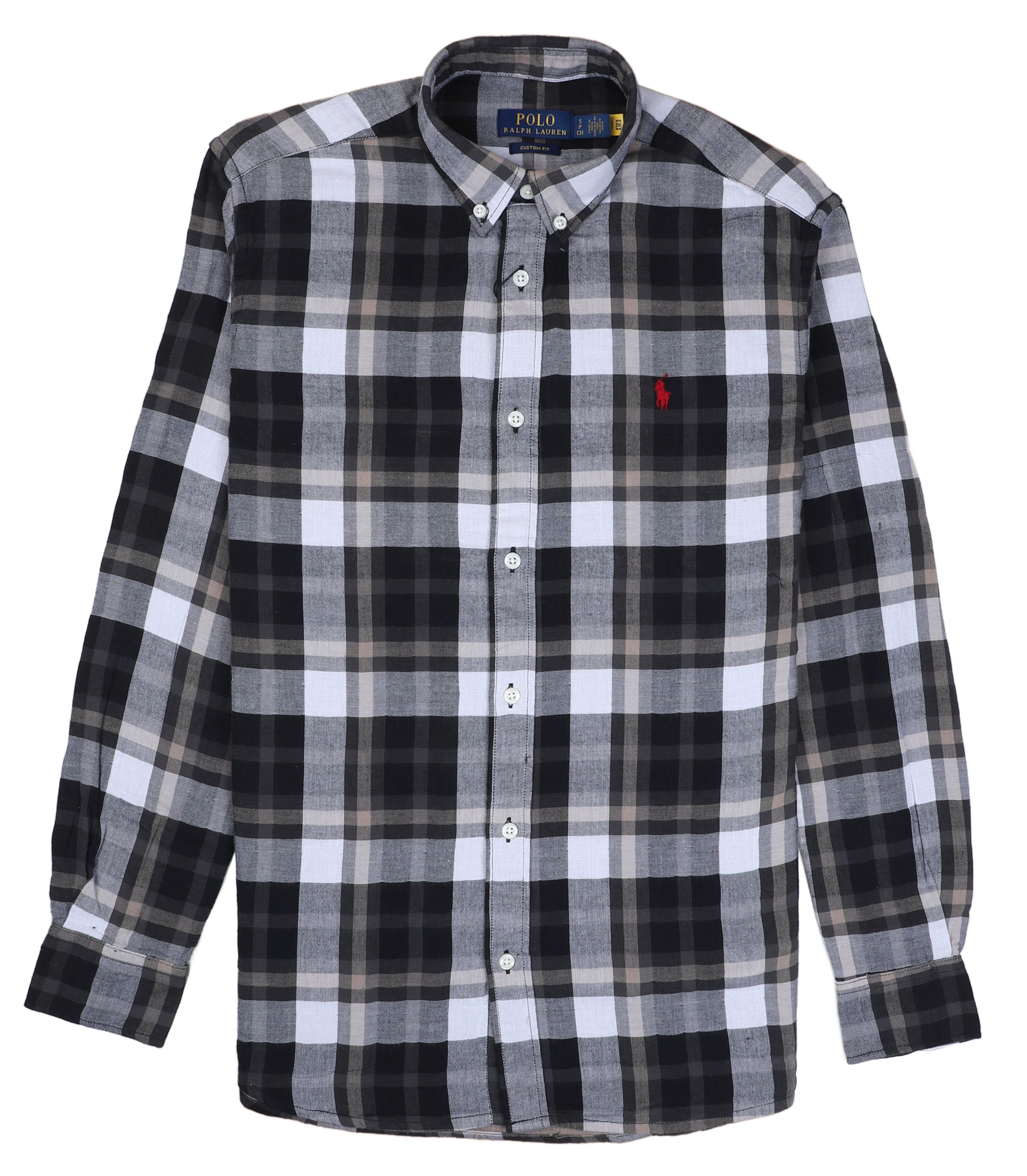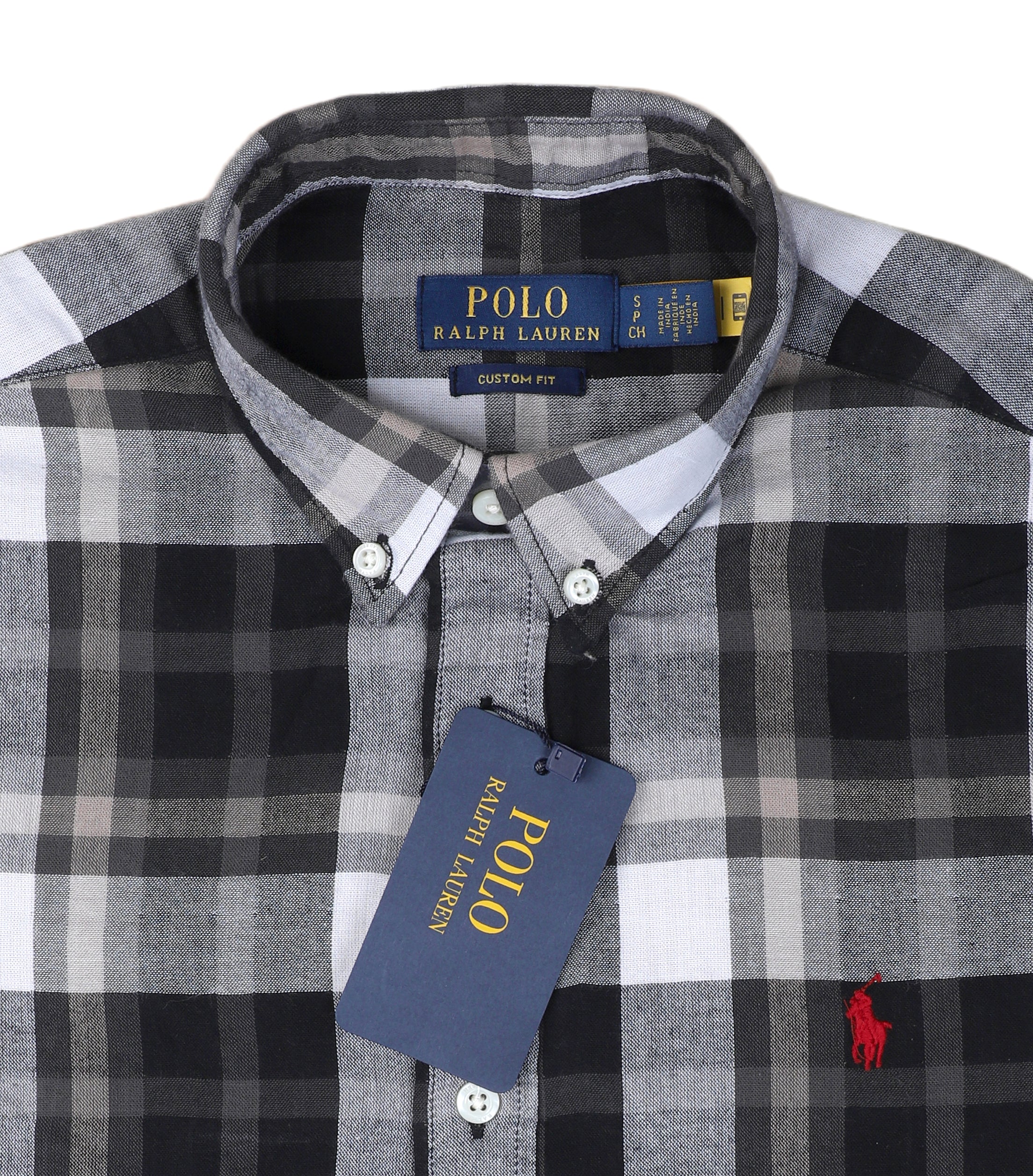 POLO RL Shadow Slate Custom Fit Plaid Button-Up Shirt