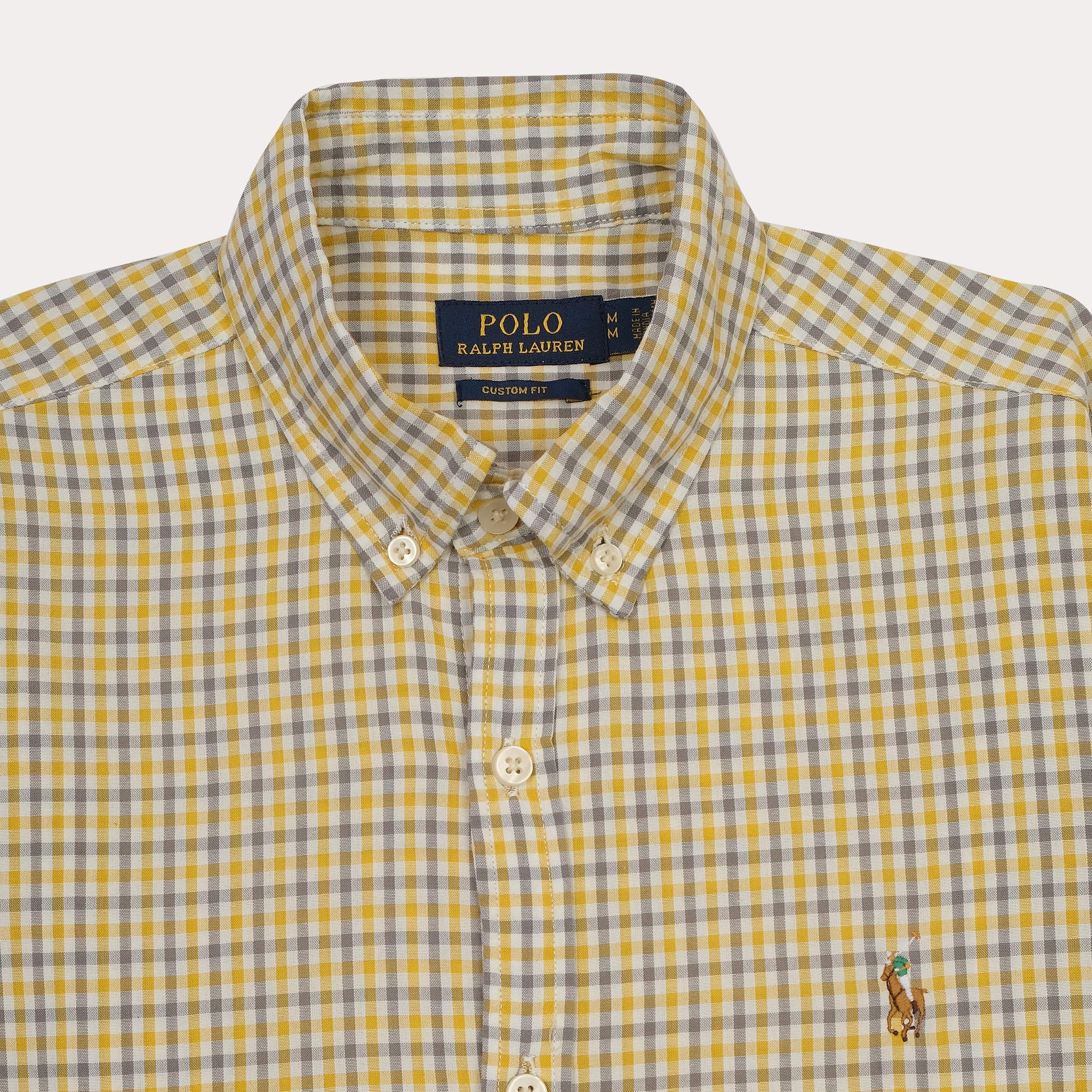 POLO RL Custom Fit Yellow Checkered Button-Down Shirt