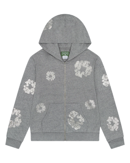 DENIM TEARS CASHMERE SWARVOSKI COTTON WREATH ZIP HOODIE GREY