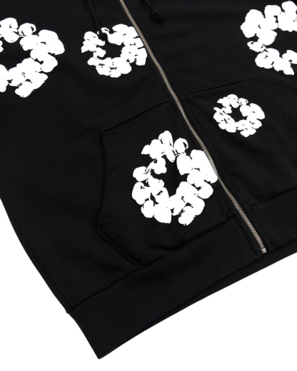 • Black zip hoodie with puff Cotton Wreath print• 100% cotton • Regular fit • Made in Portugal • Machine wash normal