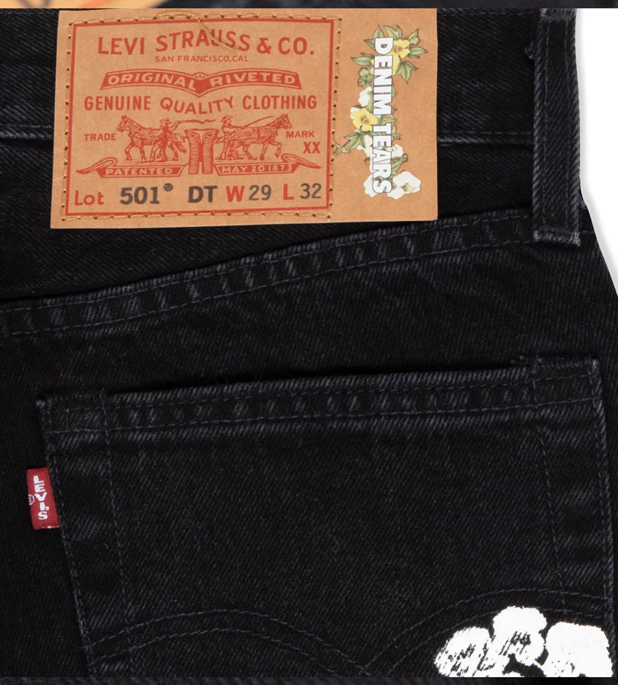 The Denim Tears 501® is inspired by the 1954 cut, with a straight fit through the seat and thigh, sits at your waist and is a slightly tapered leg.