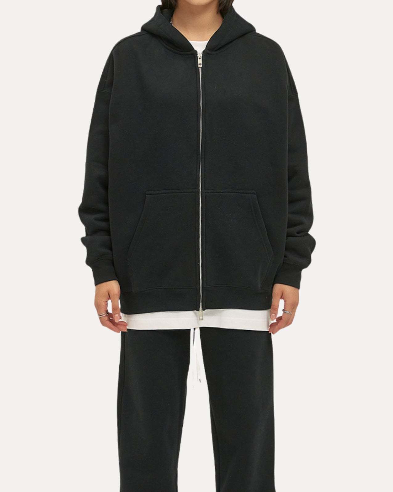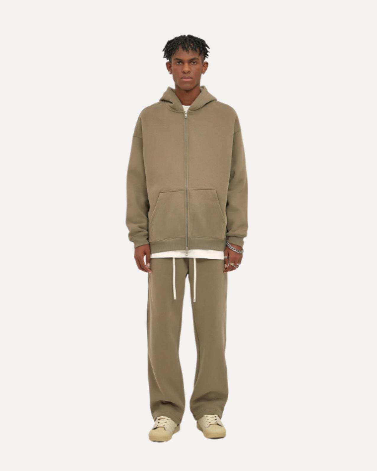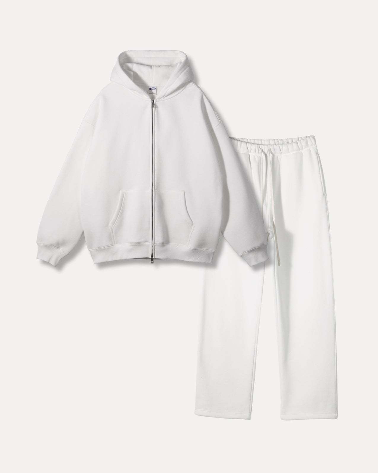 - Matching zip hoodie and drawstring pants for an easy coordinated look