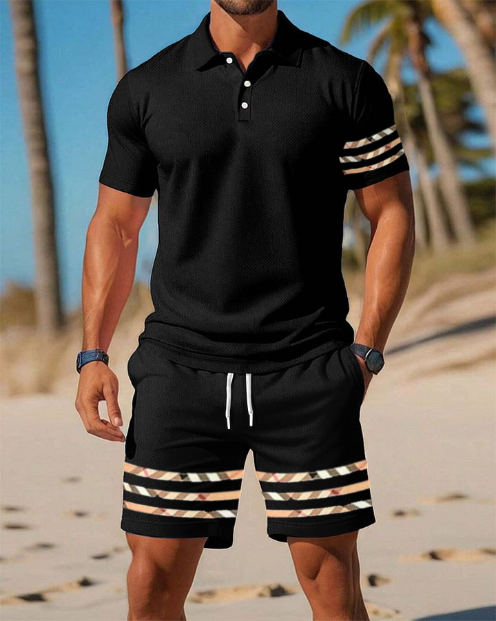 Fashion Focus Simple Black POLO Shirt Set Trendy Must-Have