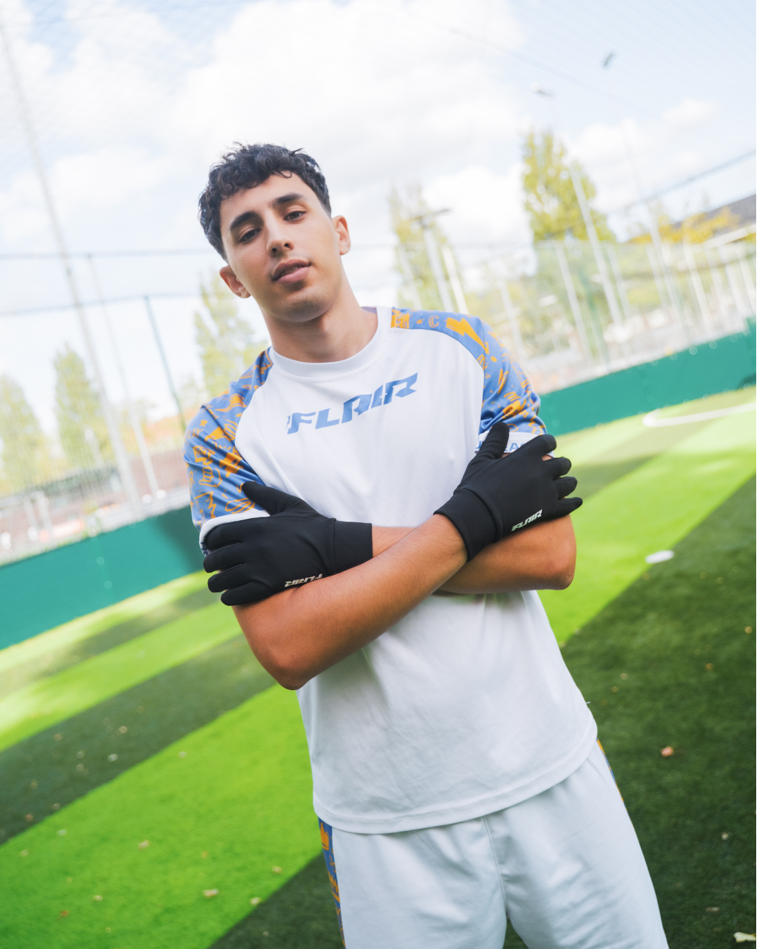 FLAIR Gloves are made for footballers who need top performance. With a secure, second-skin fit and unbeatable grip, you’ll have full control of the ball. The sweat-resistant, breathable fabric keeps your hands dry, while the lightweight design ensures comfort throughout your game. Whether training or competing, FLAIR Gloves are the ultimate choice for performance and comfort.