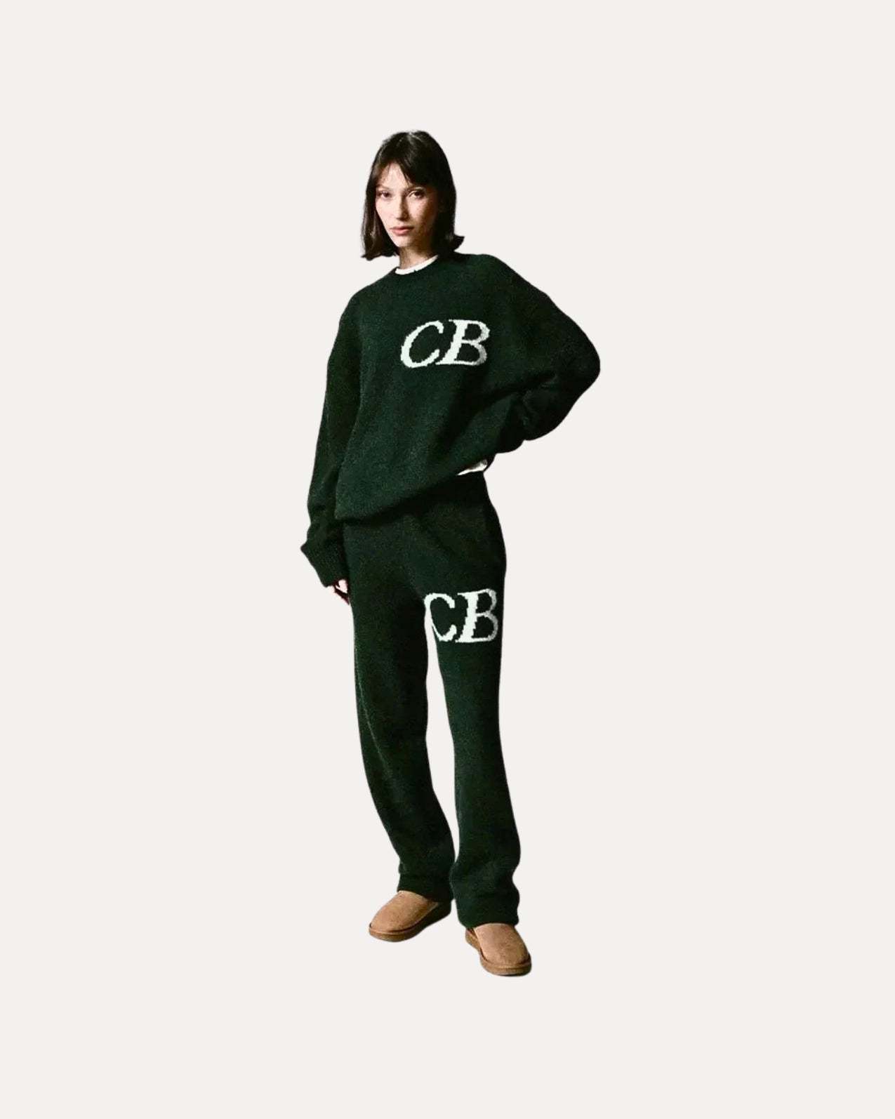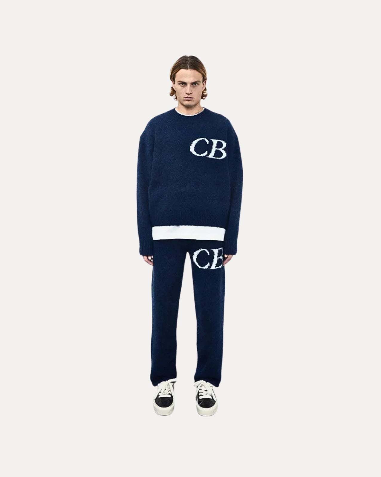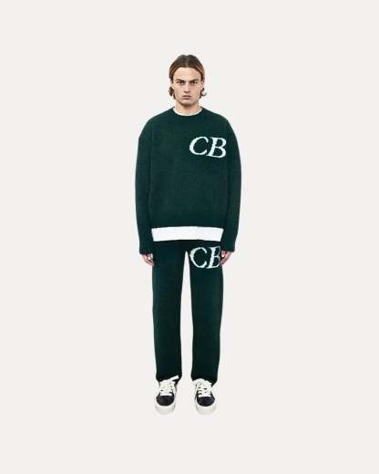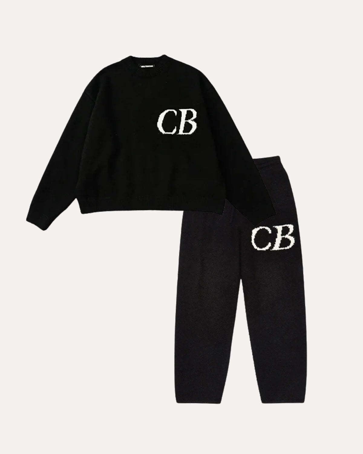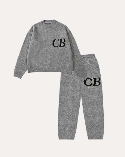 REFINE YOUR STYLE. This heavyweight knit tracksuit features a relaxed sweater and matching joggers with bold “CB” detailing. Soft, minimal, and perfect for laid-back fits or stepping out.