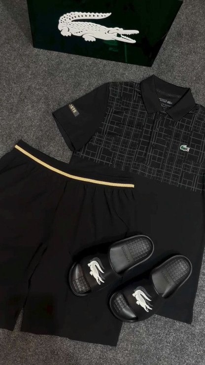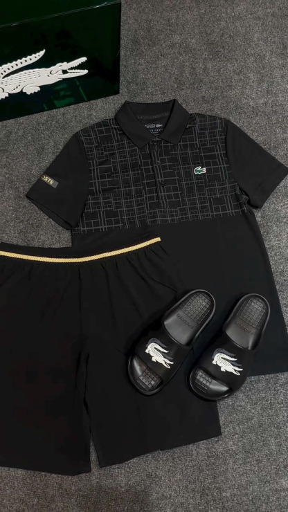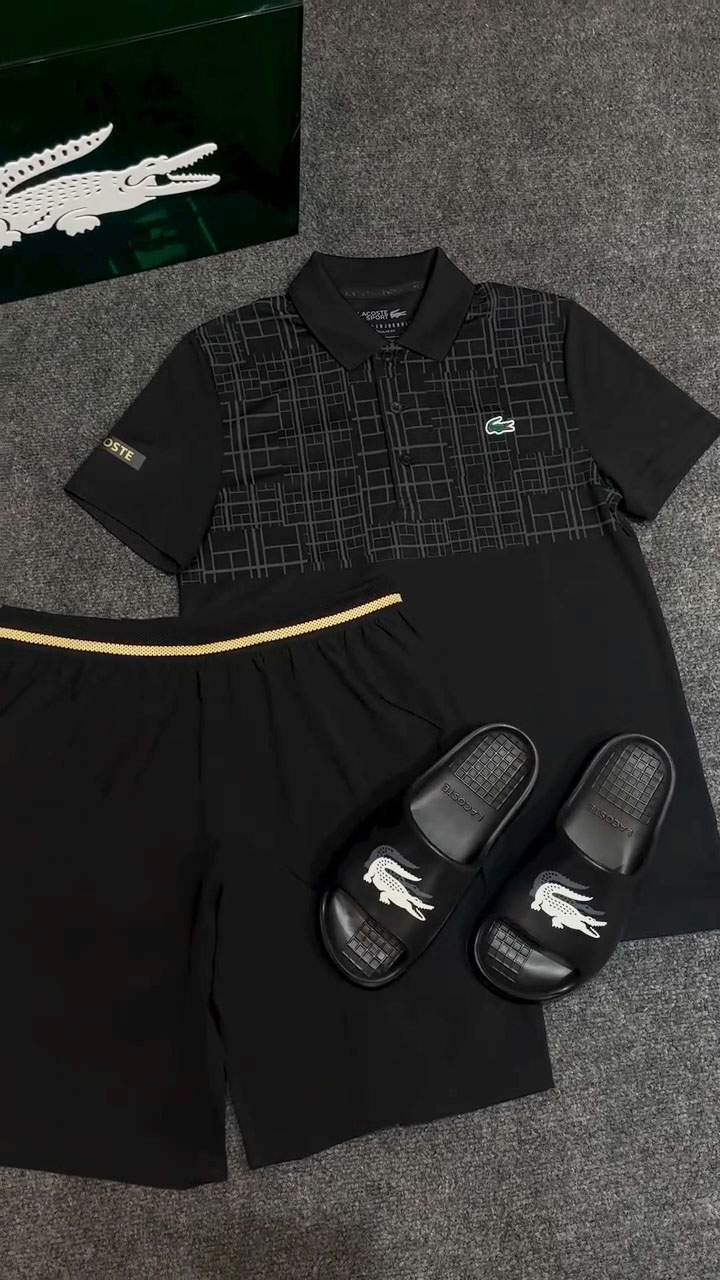 Geometric Color-block Polo Top and Casual Pants Set