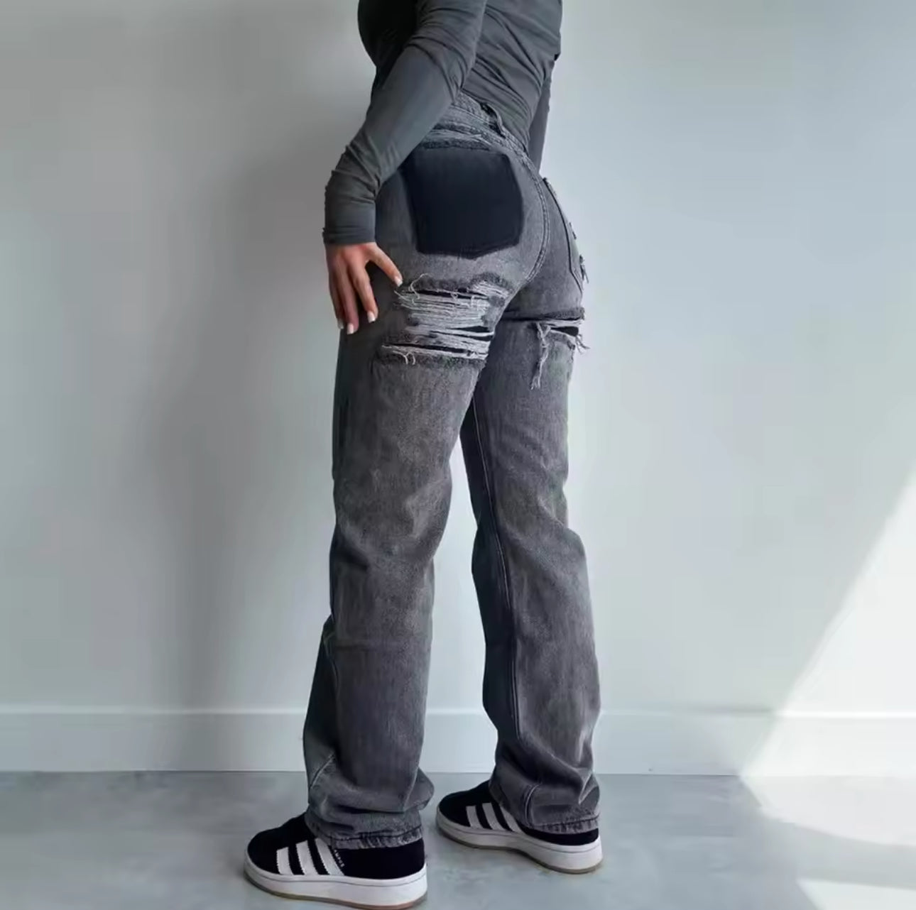 - Ripped details: The ripped back gives your outfit a playful and cool touch.