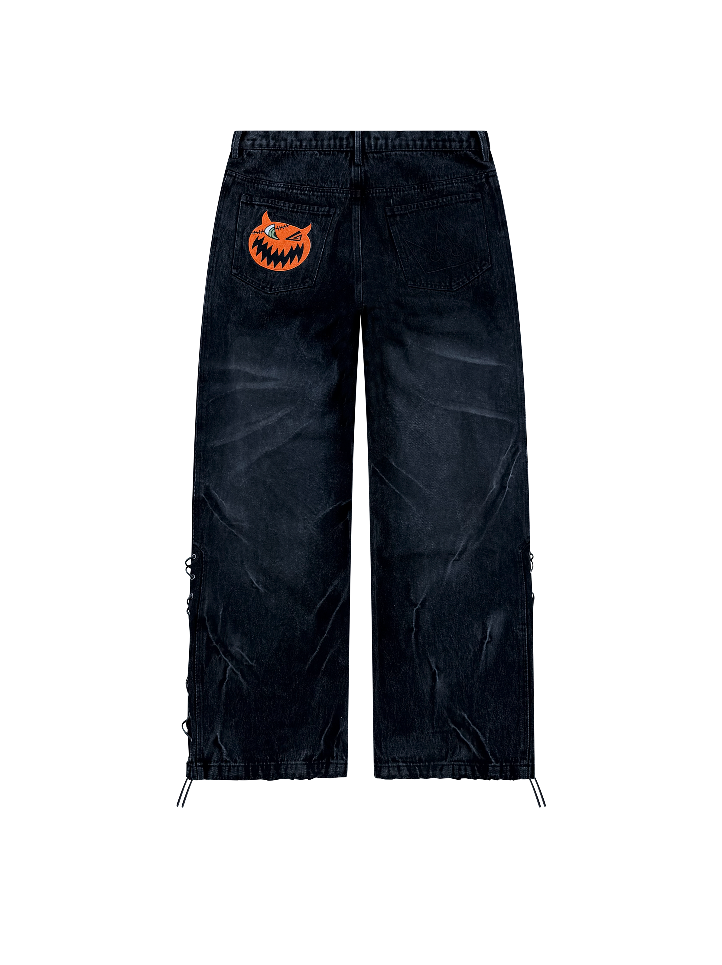-custom distressing on front & back embroideries