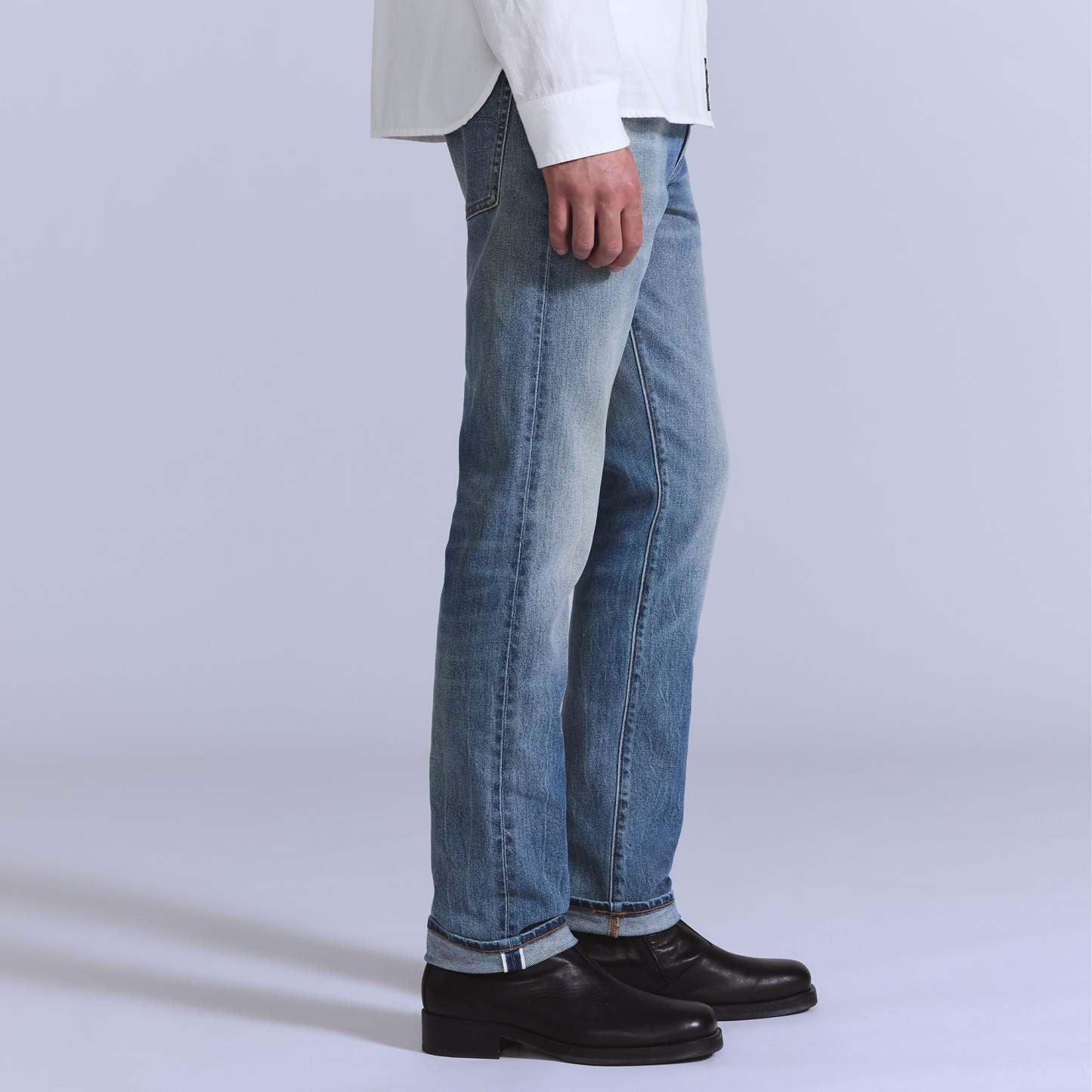 - These jeans were crafted from premium selvedge denim and woven on a traditional narrow-width shuttle loom��making them highly covetable. Roll up the cuff to show off the woven fabric strip.
