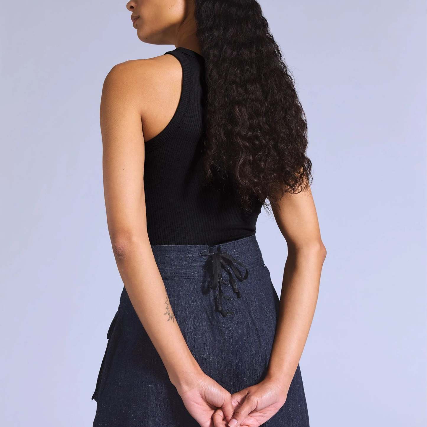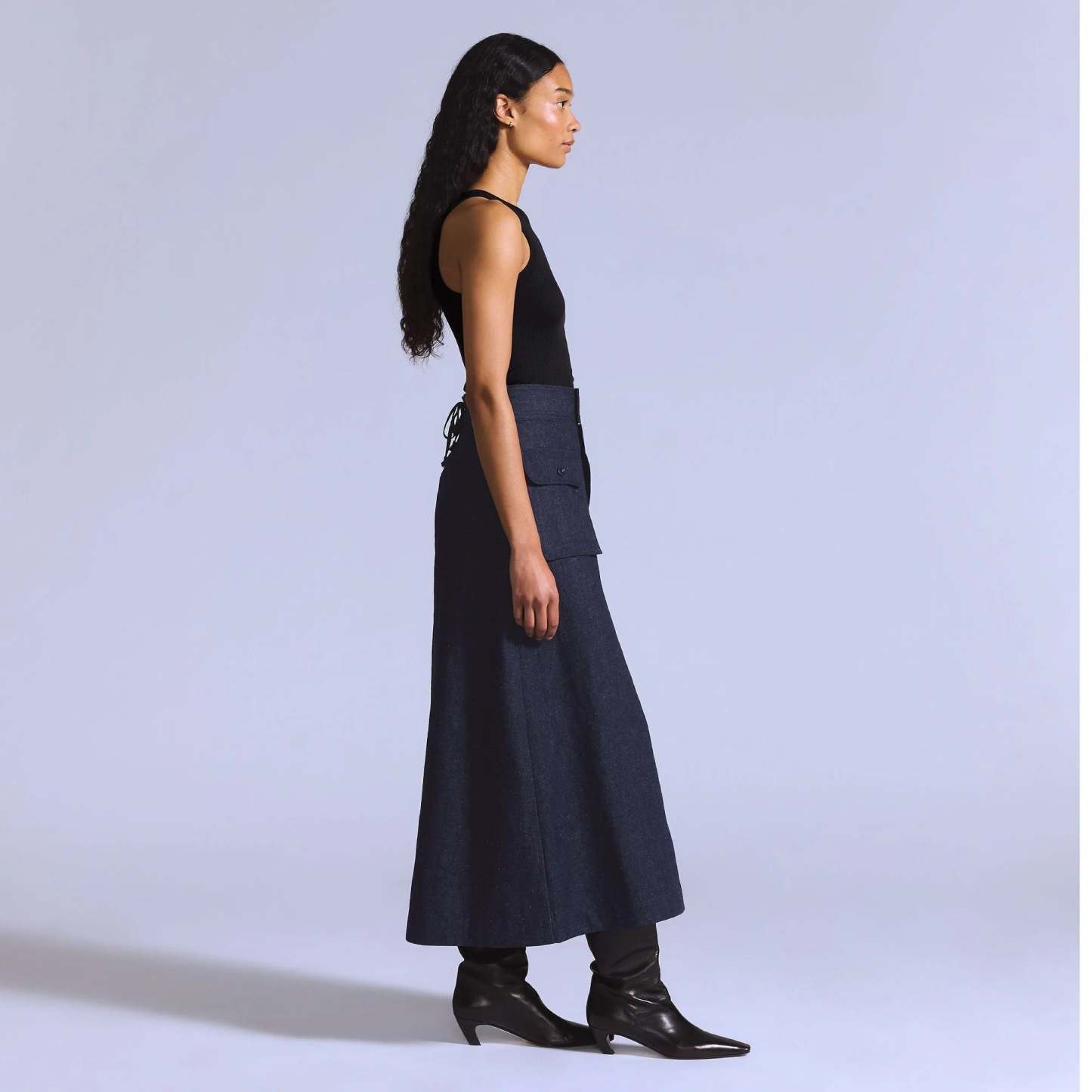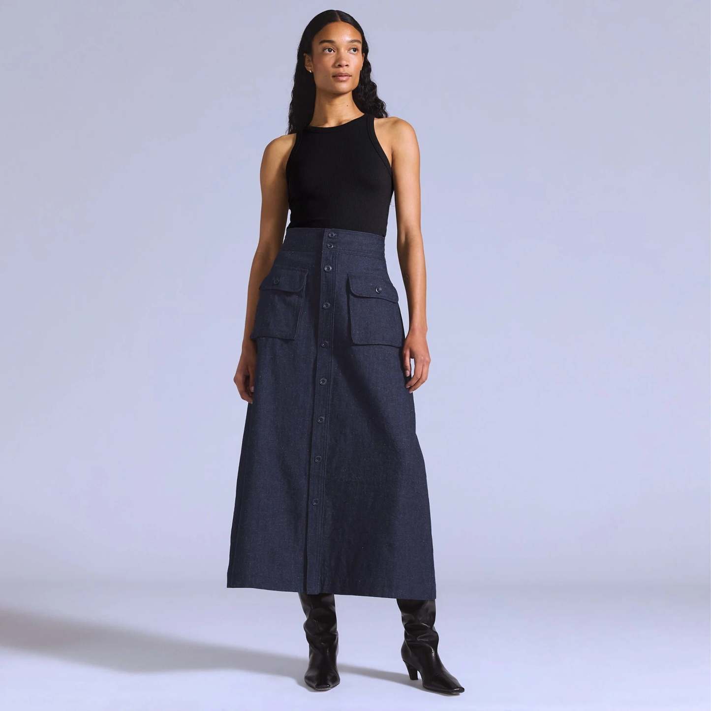 Levi's? Blue Tab? is an elevated collection that infuses our iconic denim heritage with traditional craftsmanship. Expect thoughtful details, sharp tailoring and finishes that are rich with character. What sets our Mariner Skirt apart is its ultra-flattering, A-line shape and lace-up cinch back paired with a button-up front and two large patch pockets.