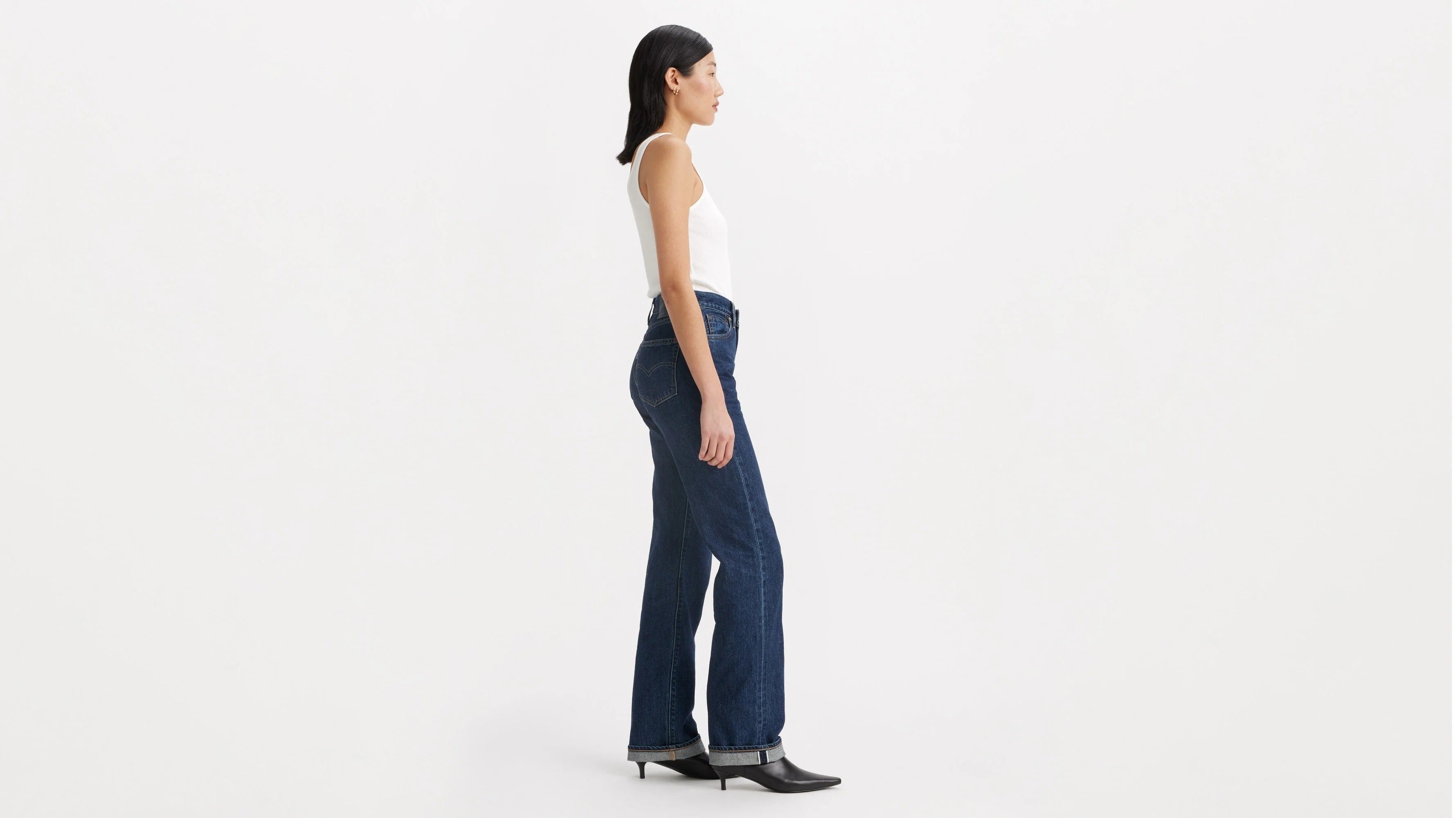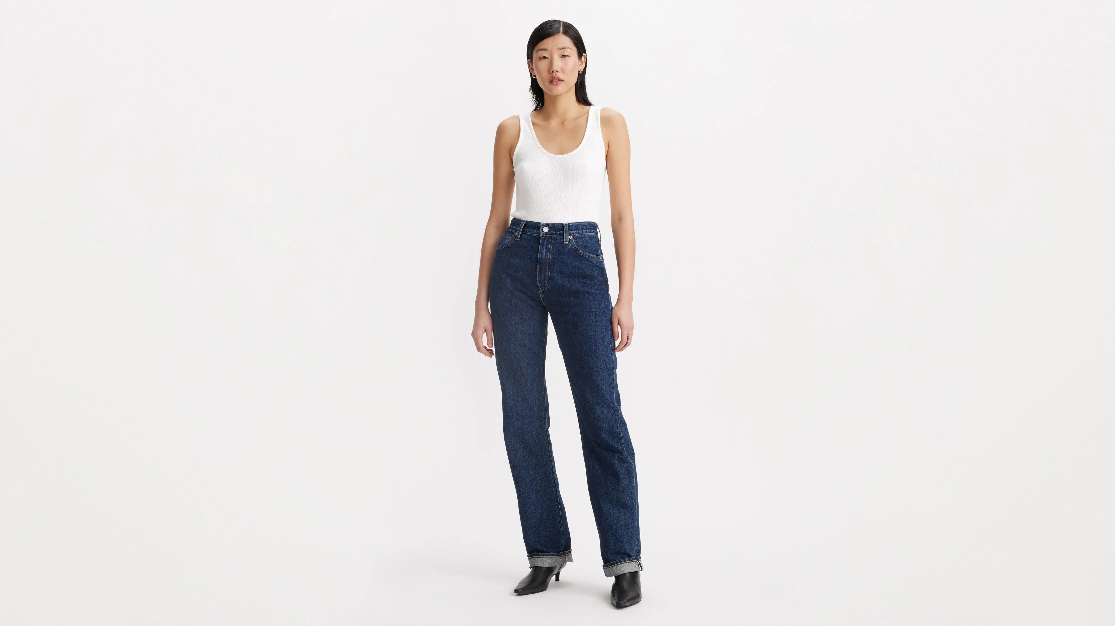 Levi's? Blue Tab? is an elevated collection that infuses our iconic denim heritage with traditional craftsmanship. Expect thoughtful details, sharp tailoring and finishes that are rich with character. This is an entirely new shape of Blue. We designed our Plank Straight with a flattering high rise and a straight, full length cut that makes it sleek and versatile. Roll up the cuff to show off the crisp selvedge ID.
