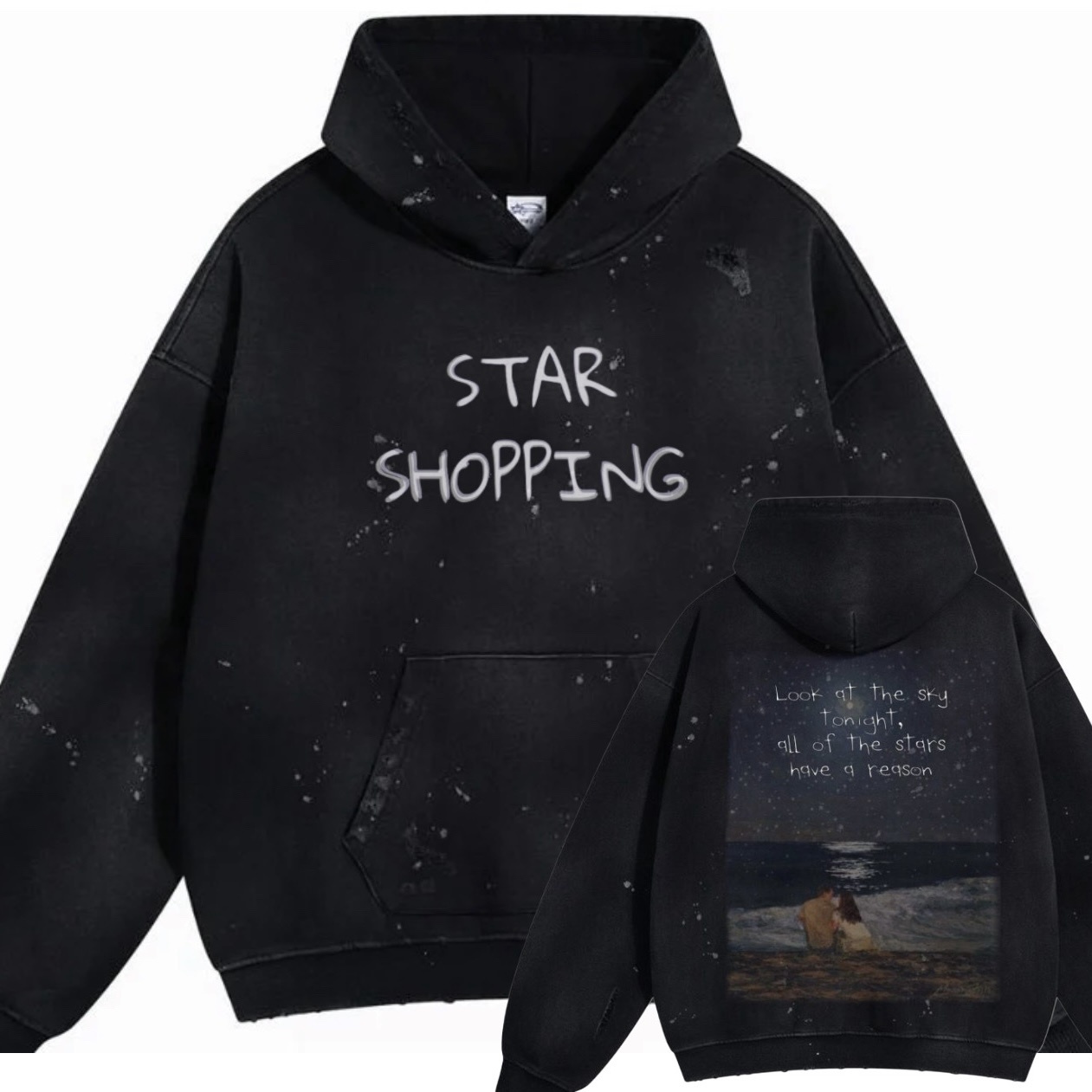 Lil peep hoodie with star shopping lyrics on the back side