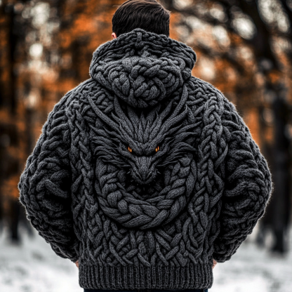 Men's Viking Dragon Style Celtic Thick Zip Hooded Sweater