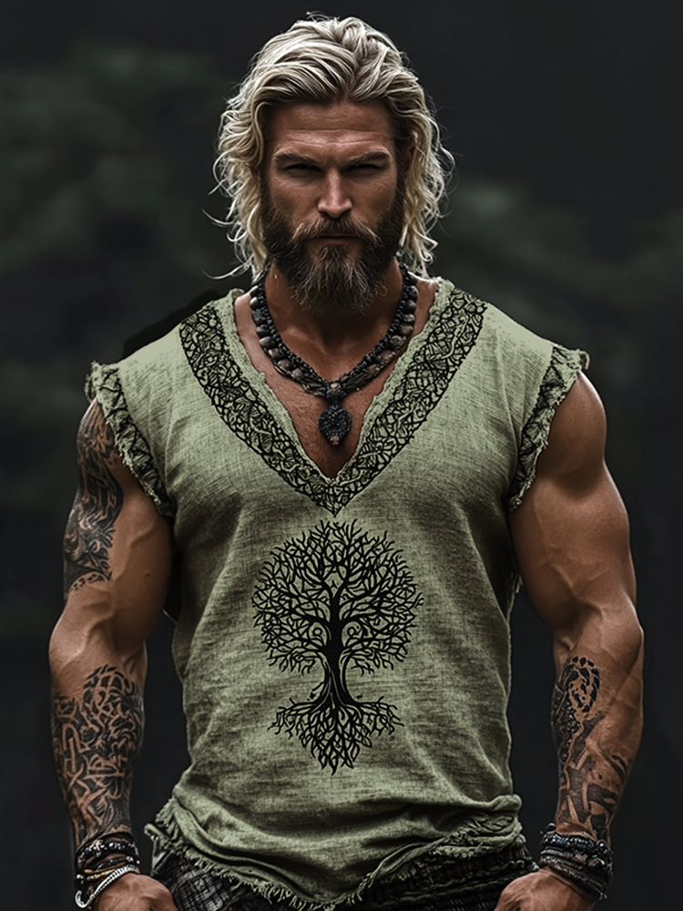 Men's Viking Tribal Tree Of Life Celtic Art V-neck Tank Top