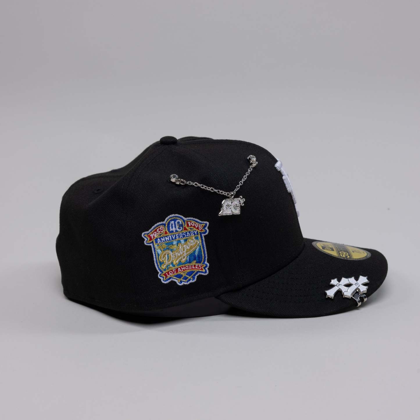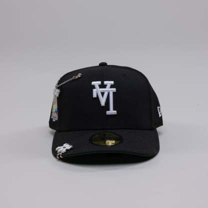 NEW ERA EXCLUSIVE 59FIFTY BLACK UPSIDE DOWN LOS ANGELES DODGERS W/ 40TH ANNIVERSARY SIDE PATCH