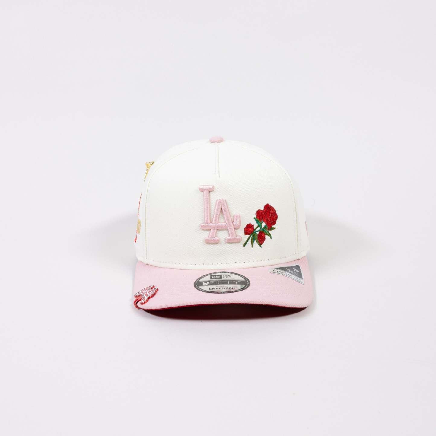 NEW ERA EXCLUSIVE 9FIFTY A-FRAME CHROME/ SOFT PI LOS ANGELES DODGERS SNAPBACK W/ 2024 WORLD SERIES CHAMPIONS SIDE PATCH