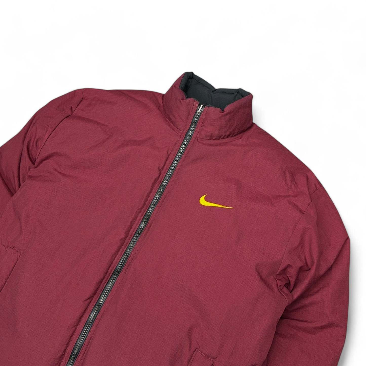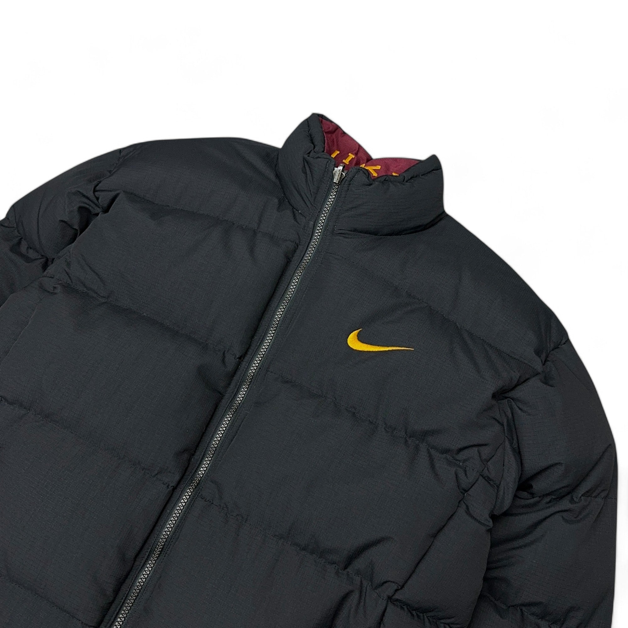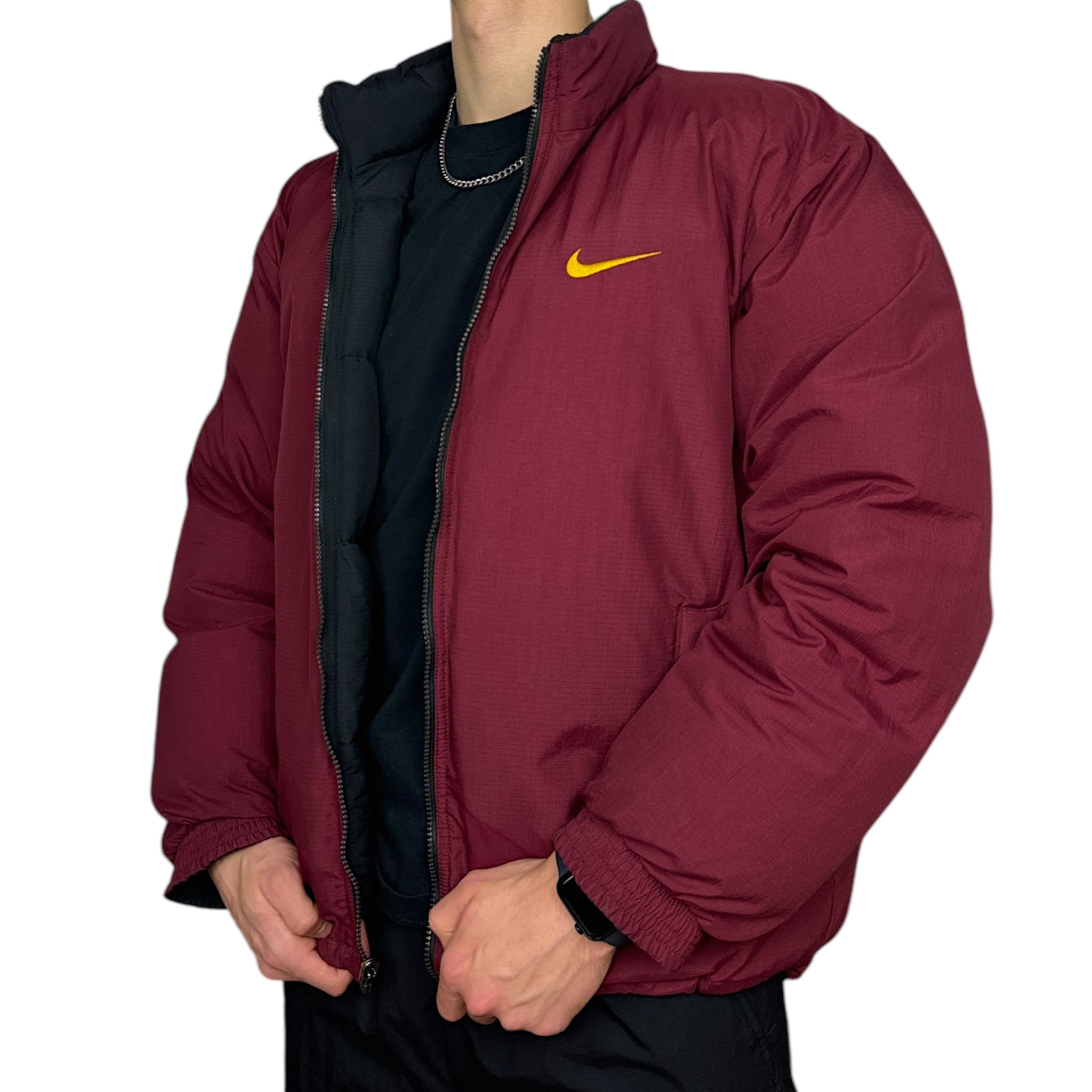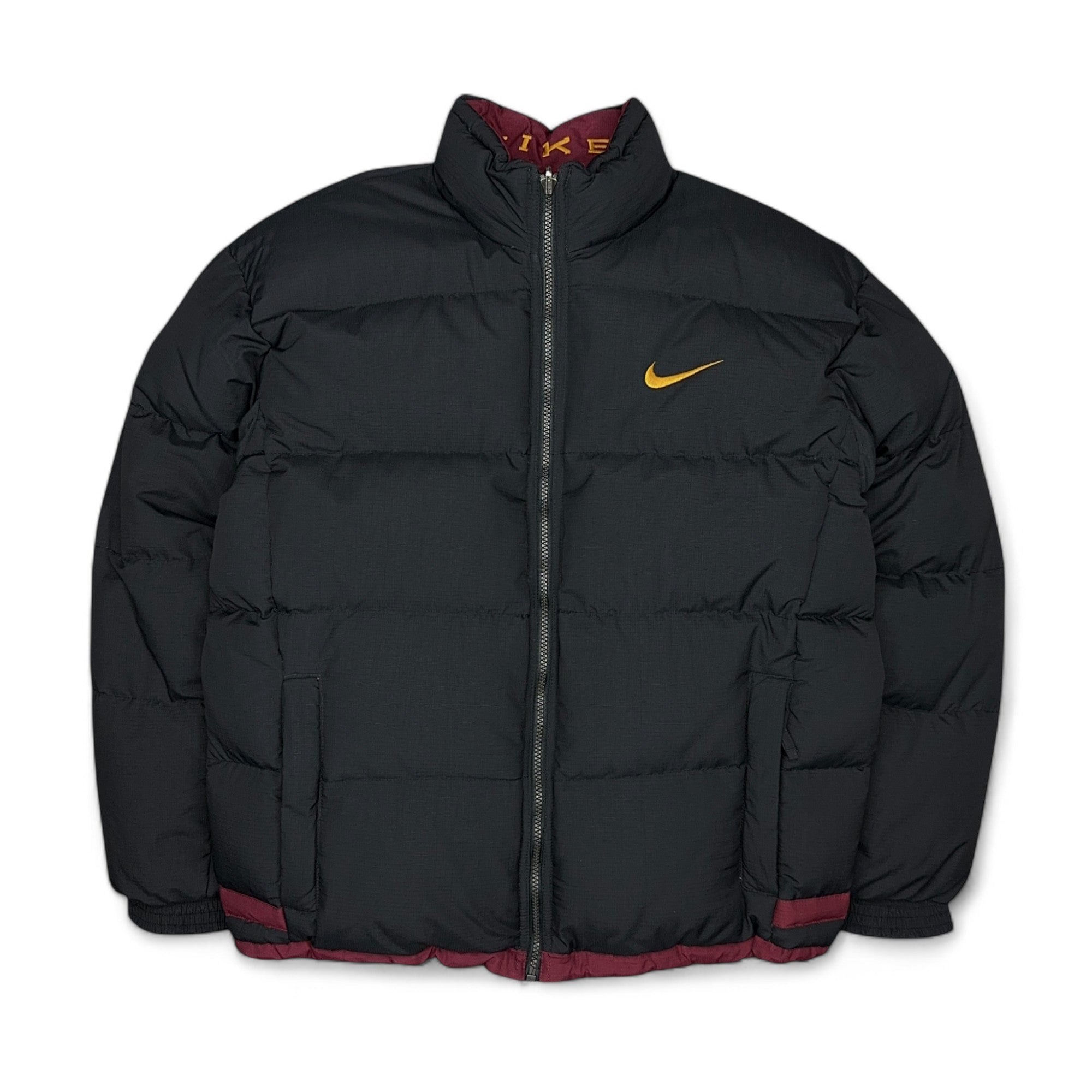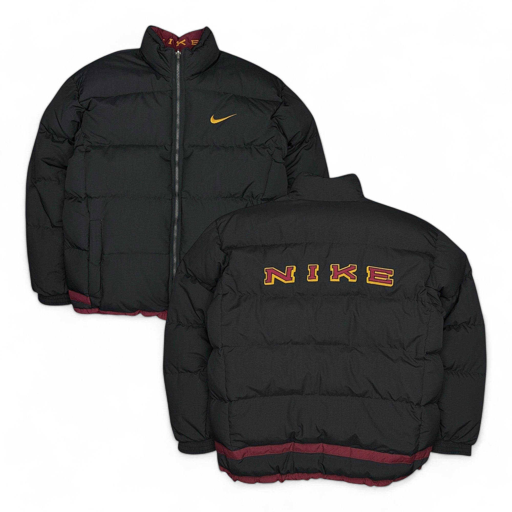 Nike Vintage 90s 1998 Rare Spellout Reversible Down PufferJacke Schwarz Rot