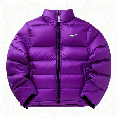 This warm puffer jacket features a soft inner lining, thick insulation, and a detachable hood, providing comfort and protection in cold weather.