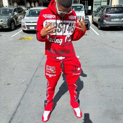 Personalized retro racing pattern hoodie set