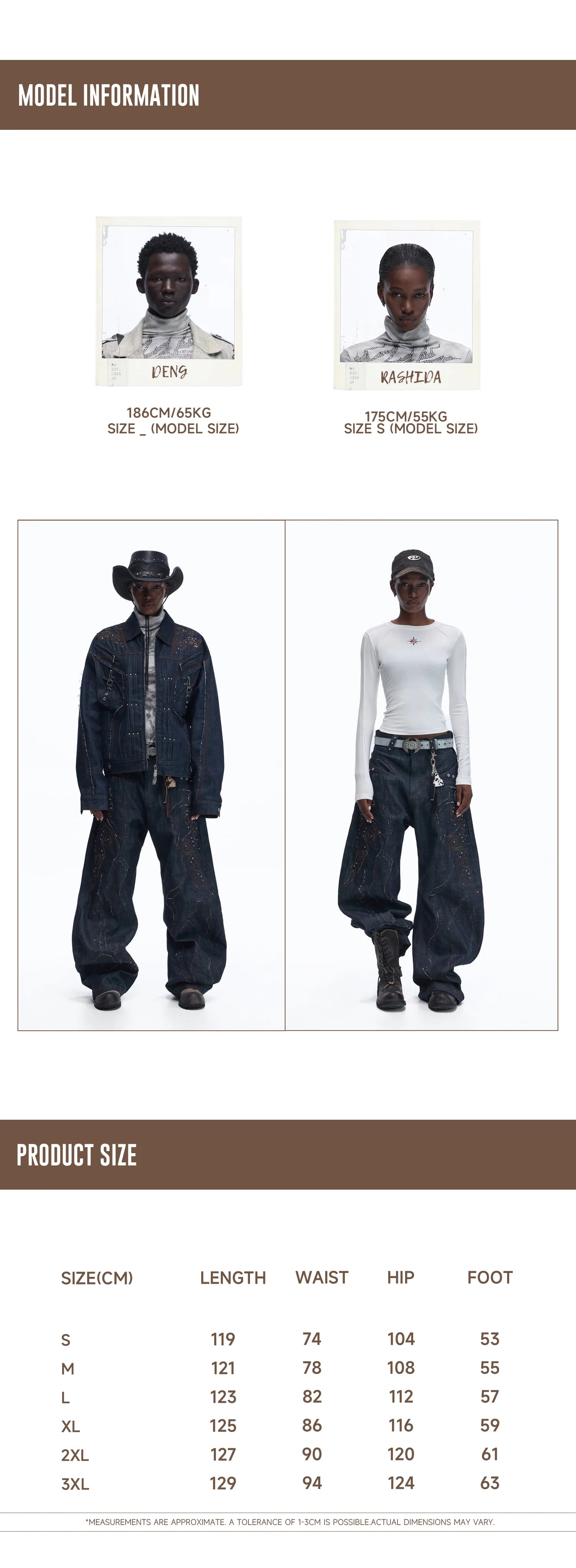 Personsoul Patchwork-Embroidered Raw Denim Curved Pants