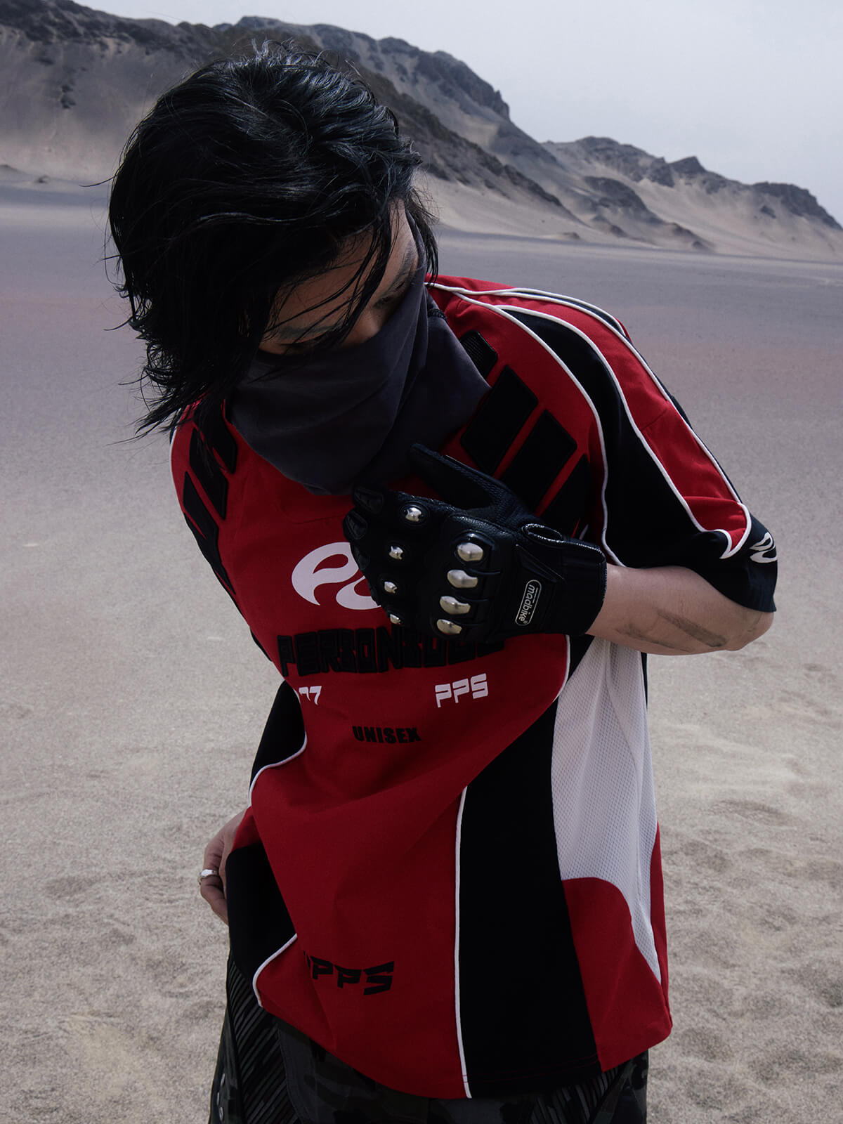 • Male model is 180cm/5′11″, weight 68kg/150lbs, waist 74cm/29in, chest 86cm/34in, wearing size L.
