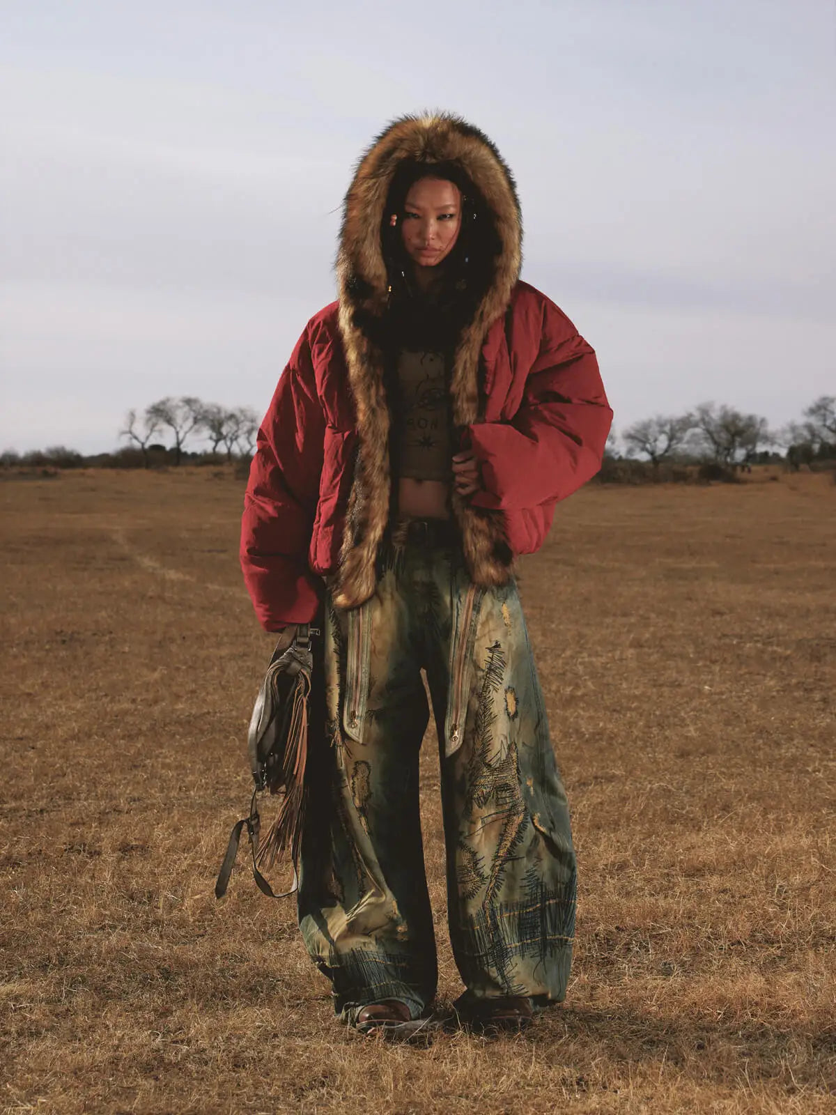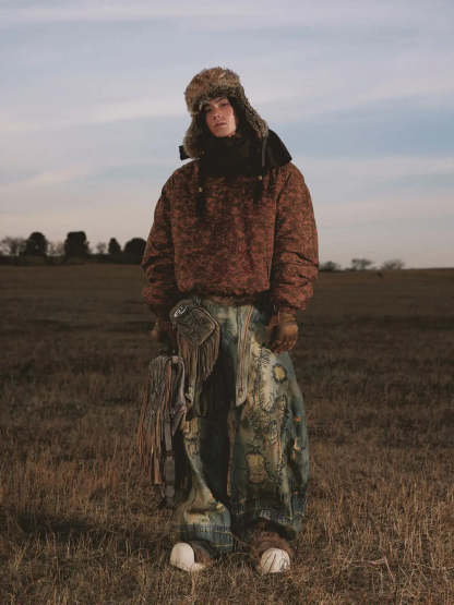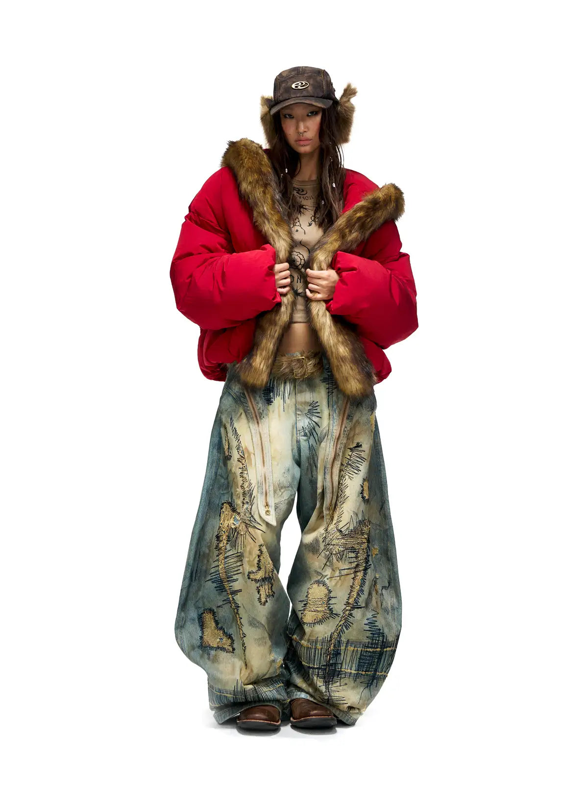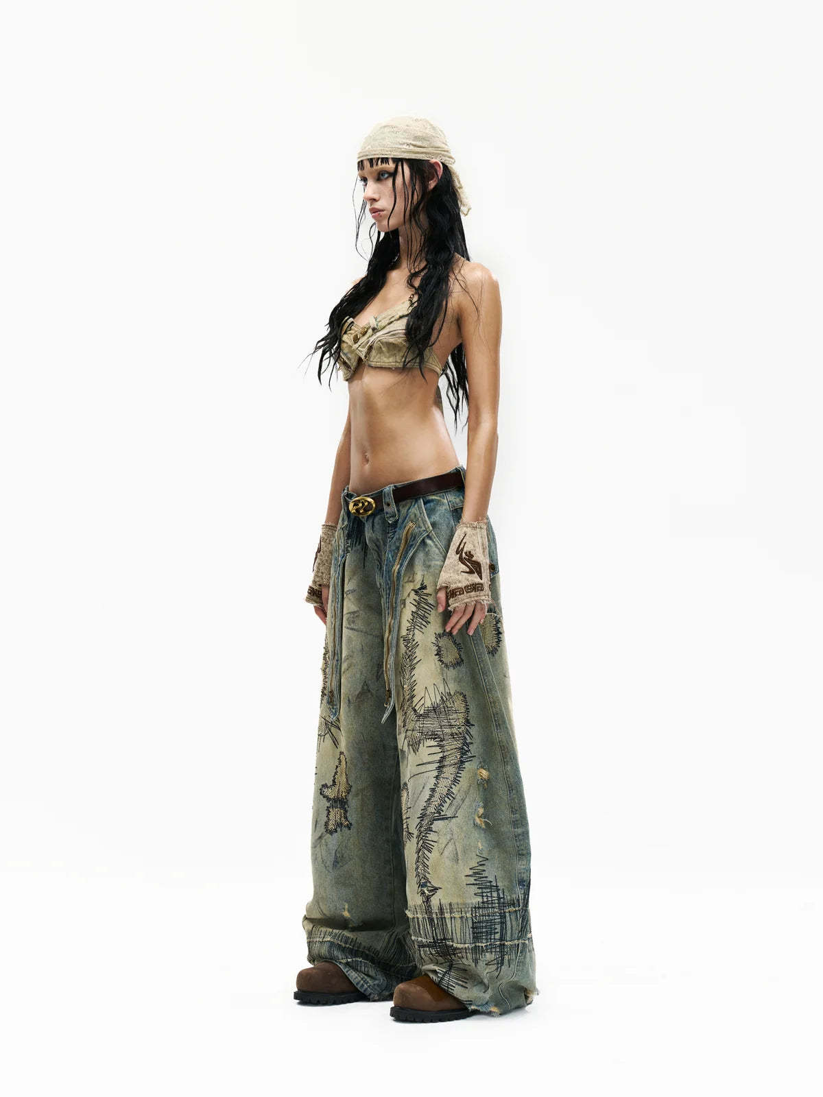 Personsoul Stain Embroidery Curved Jeans