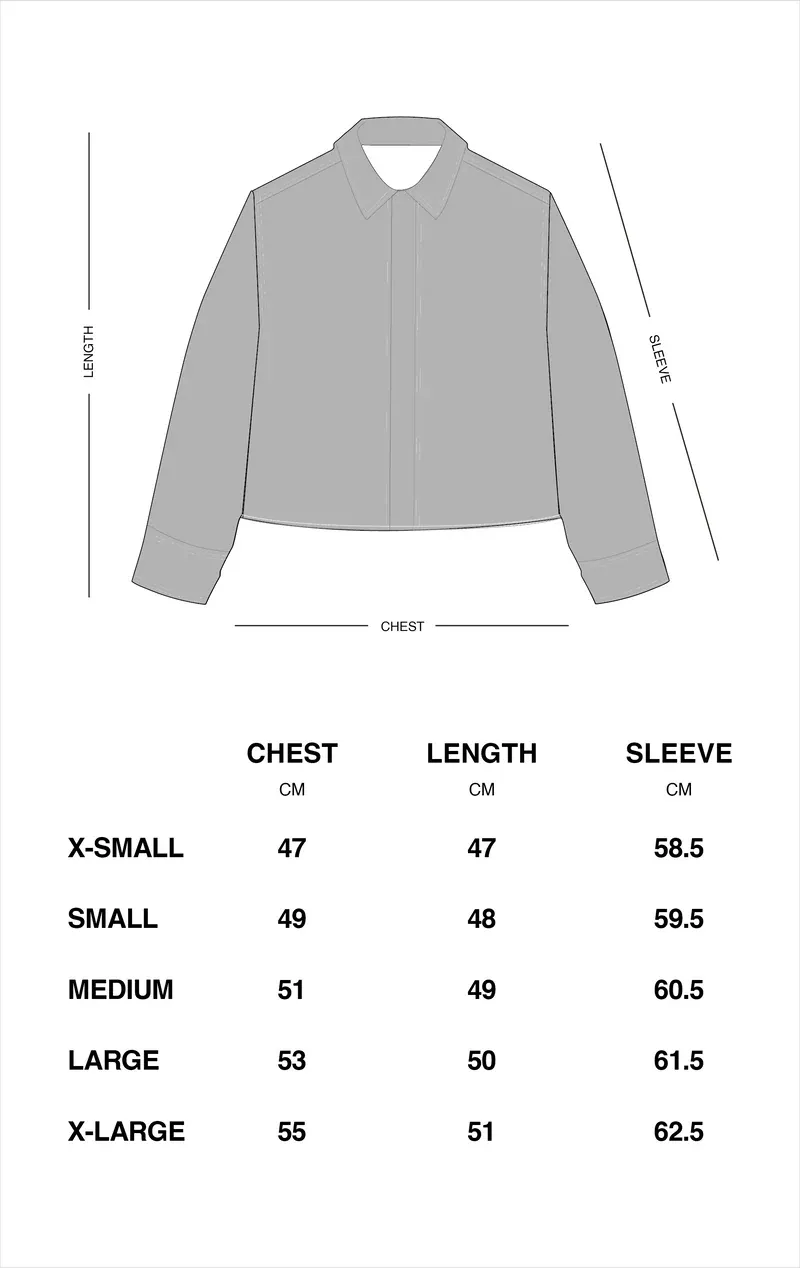 Wash Cropped Denim Jacket made from rigid cotton denim, featuring a boxy fit with a structured collar, flap chest pockets, and button front closure. Detailed with contrast stitching, embroidery on the pockets, and adjustable buttoned tabs at the waist and cuffs.