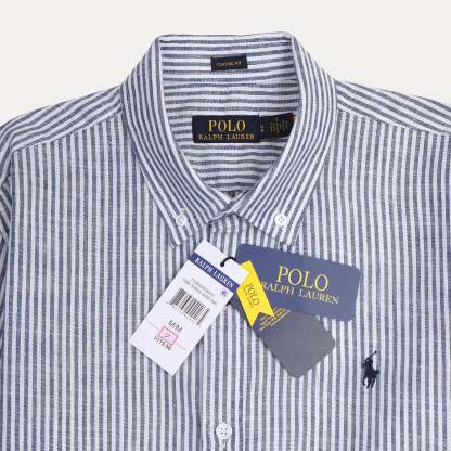 Polo RL Classic Fit Striped Linen Shirt in Nautical Blue