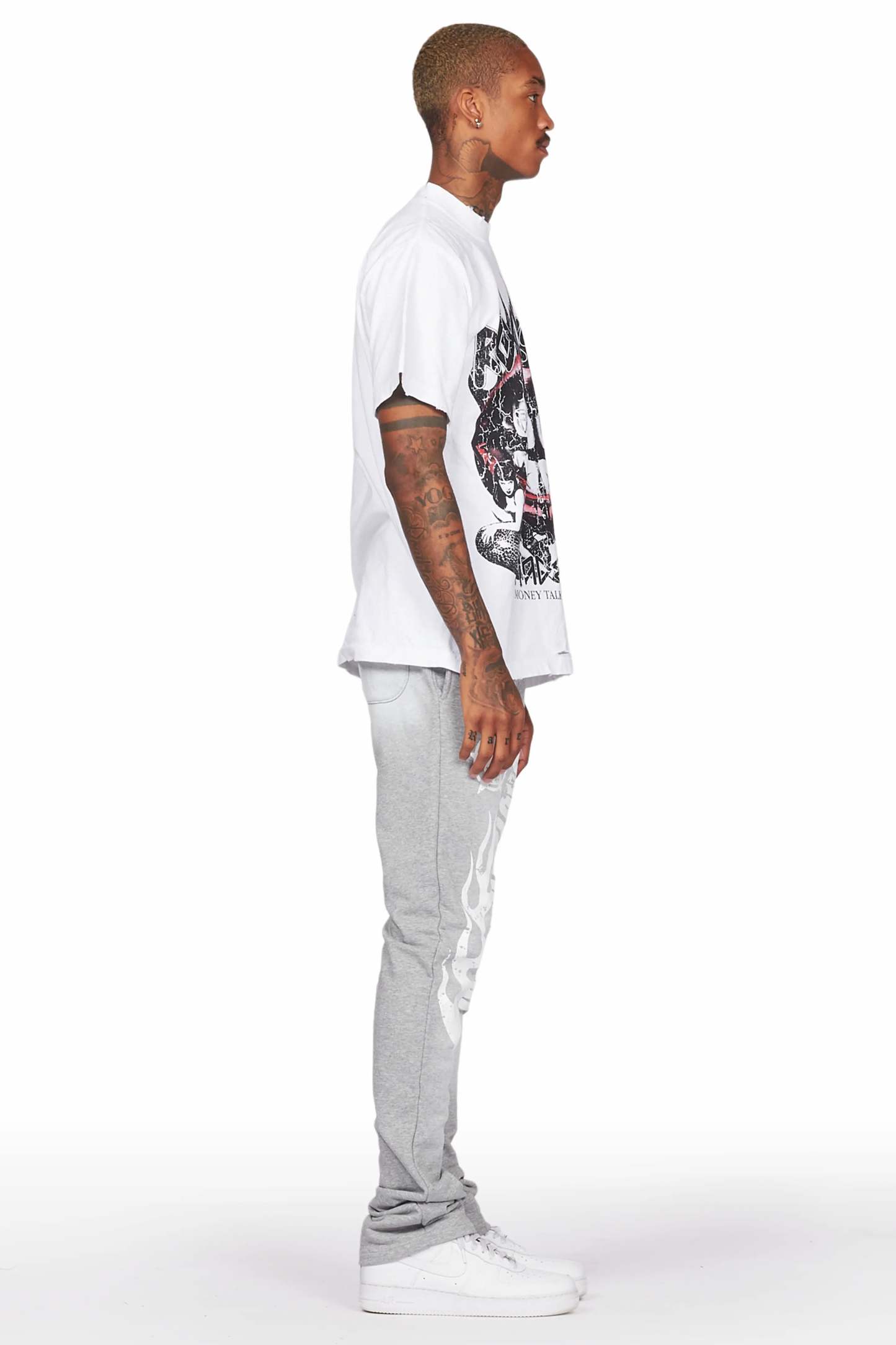 Vadim White/Grey Oversize T-Shirt/Stacked Flare Track Set