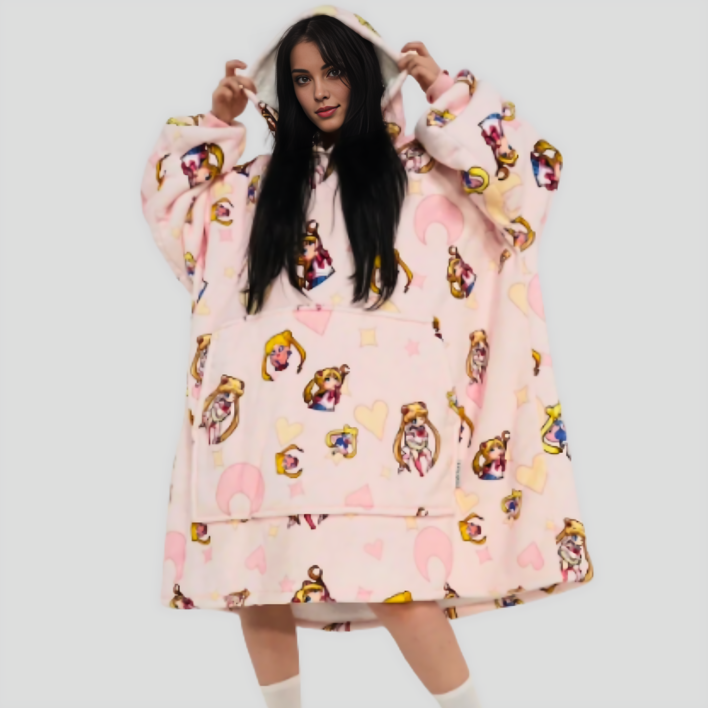 Enjoy the ultimate wearable anime blanket hoodie — soft, warm, oversized, and perfect for gifting or relaxing in magical Sailor Moon style.