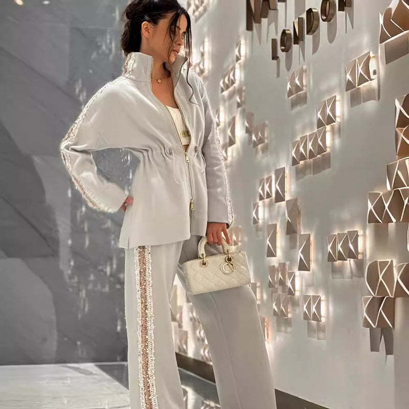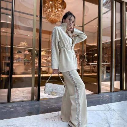 💖Women's Elegant Sequin-Trimmed Top and Wide-Leg Pants Set