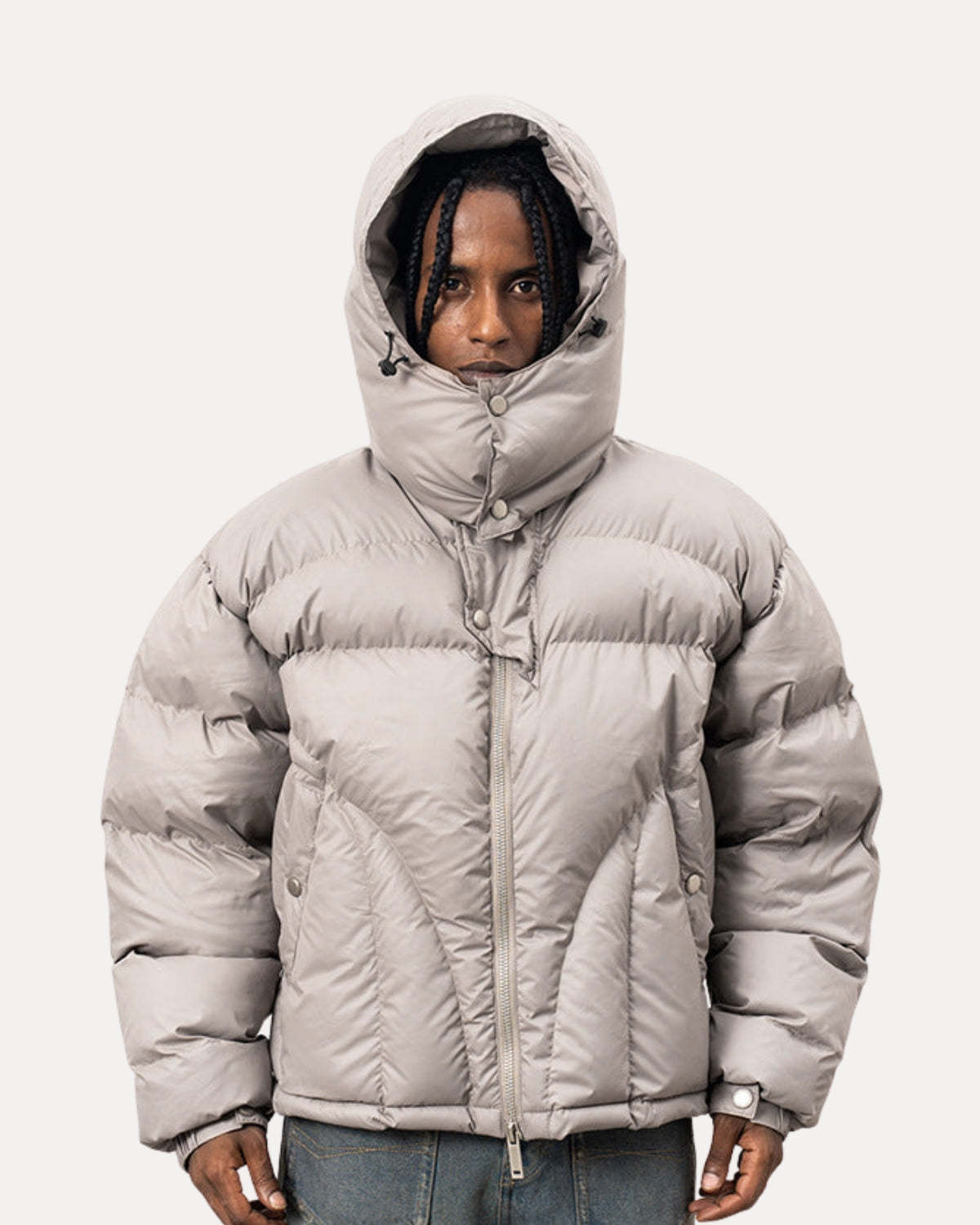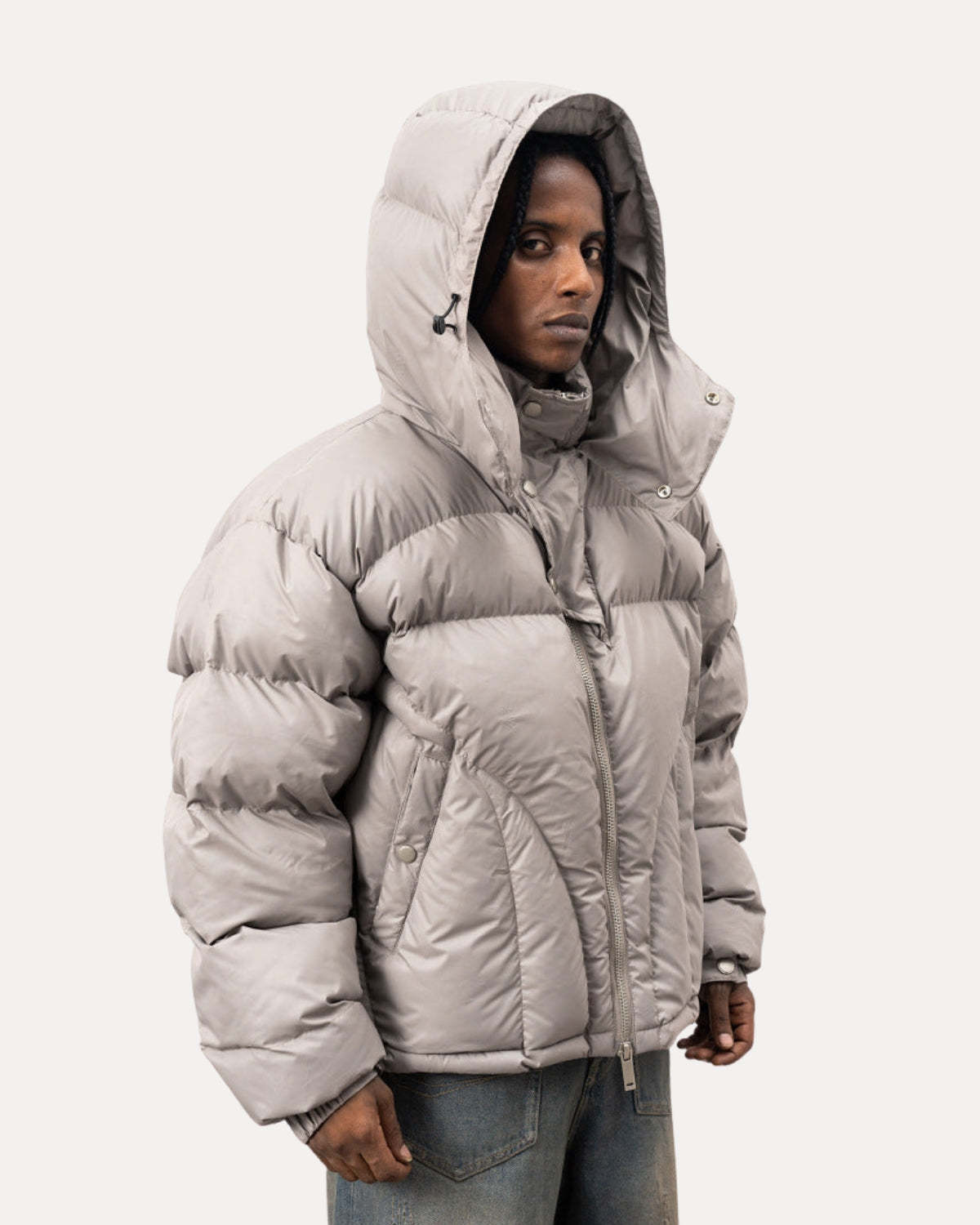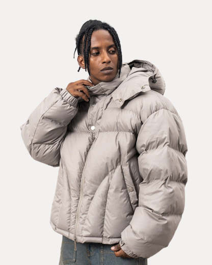 REFINE YOUR STYLE. The Shield Puffer Jacket delivers warm, structured protection with a modern cropped silhouette. Made with a high-loft padded design and an adjustable hood, it keeps you comfortable while adding a bold winter look.