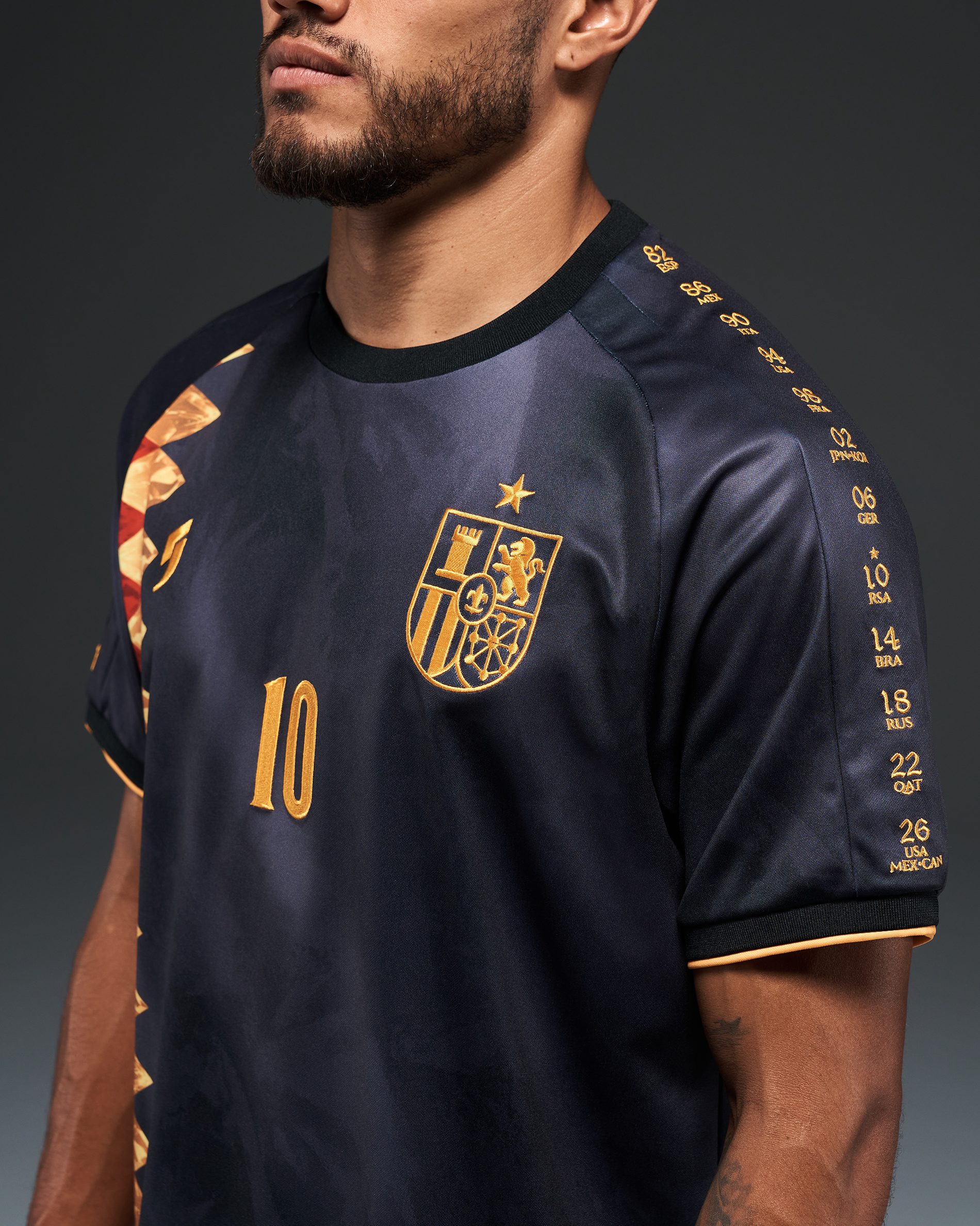 Every World Cup Spain entered, embroidered along the sleeves.