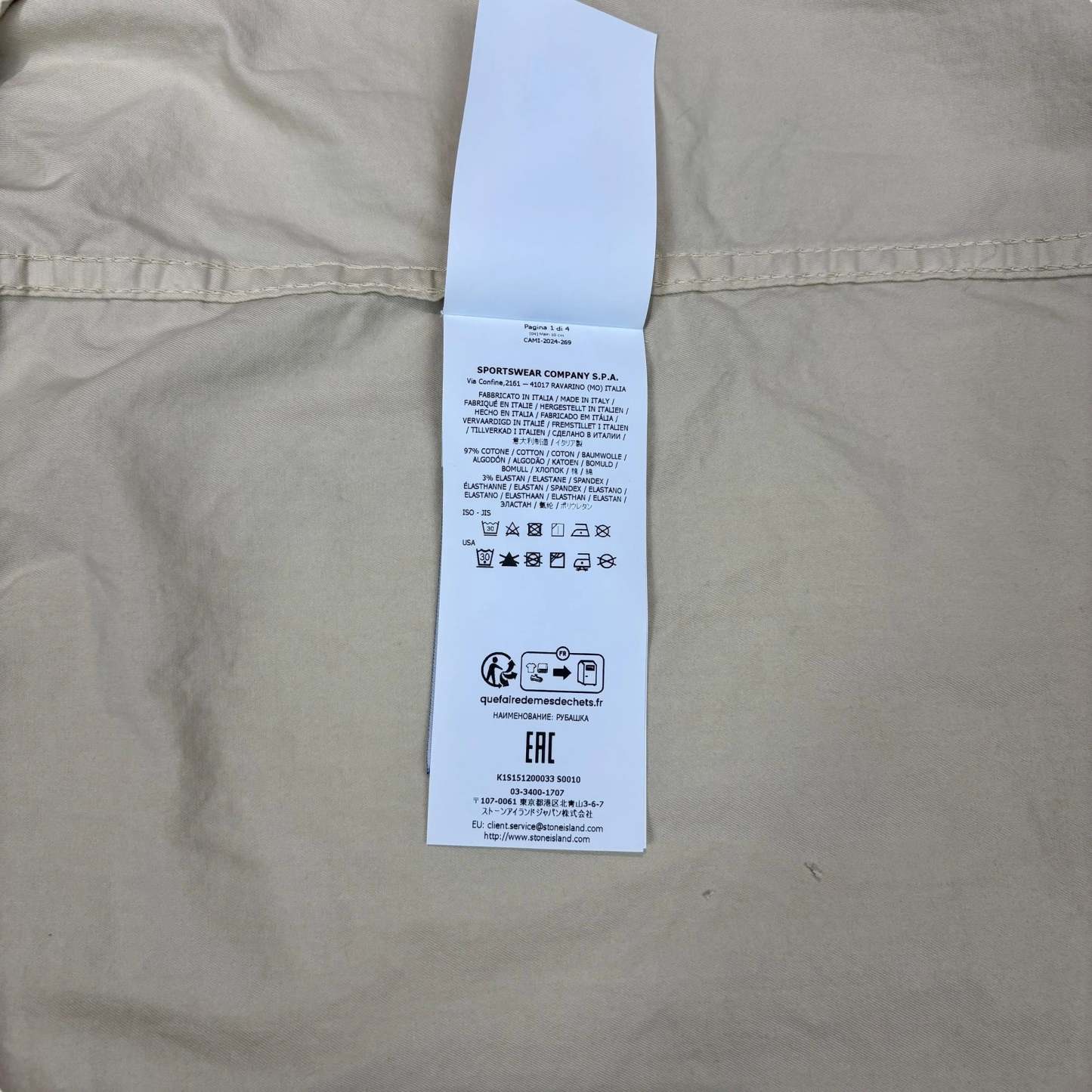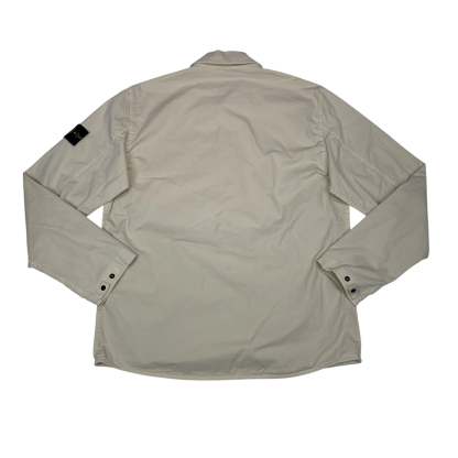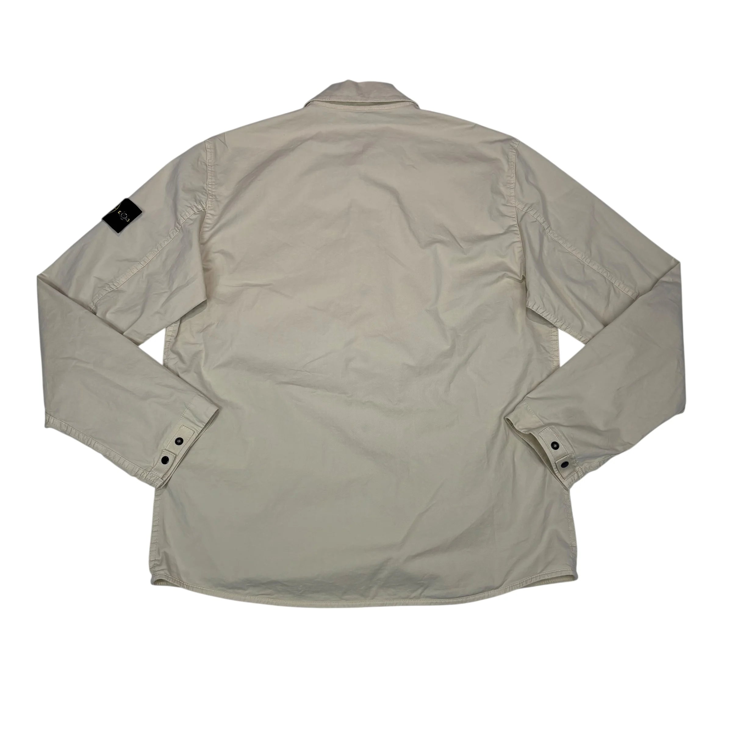 Beige Compass Patch Front Pocket Design Collared Overshirt Jacket